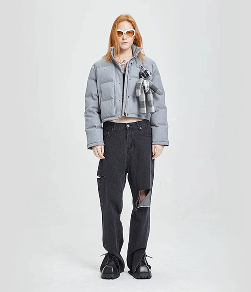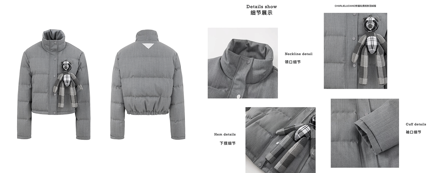 关键词:灰色熊猫玩偶羽绒服