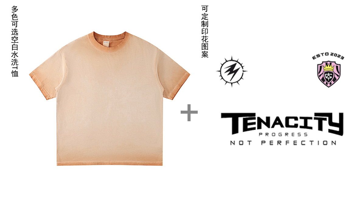 水洗T恤+印绣花图案