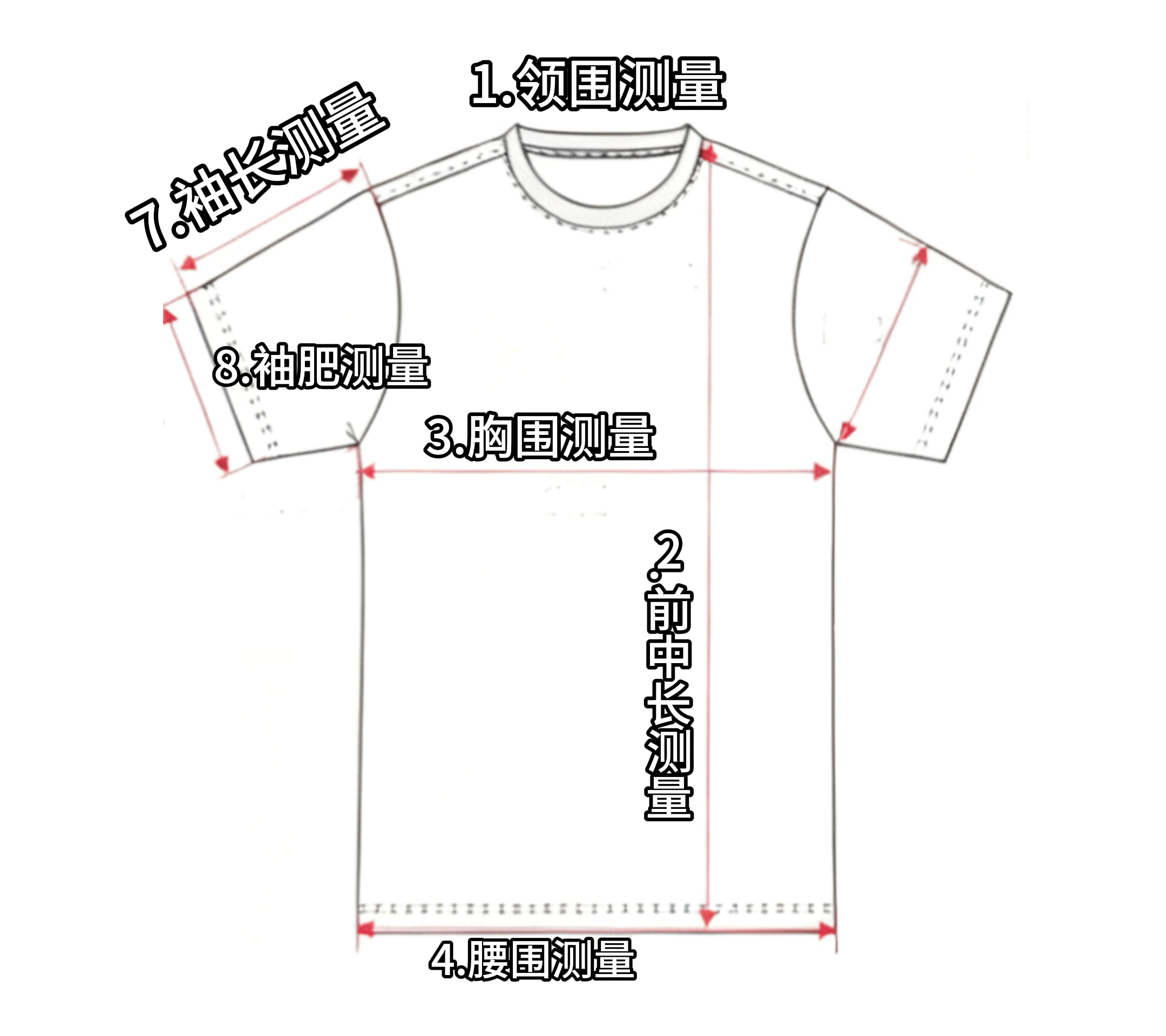 服装尺寸测量对应位置