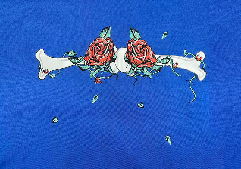 平绣刺绣+丝网印花工艺图案