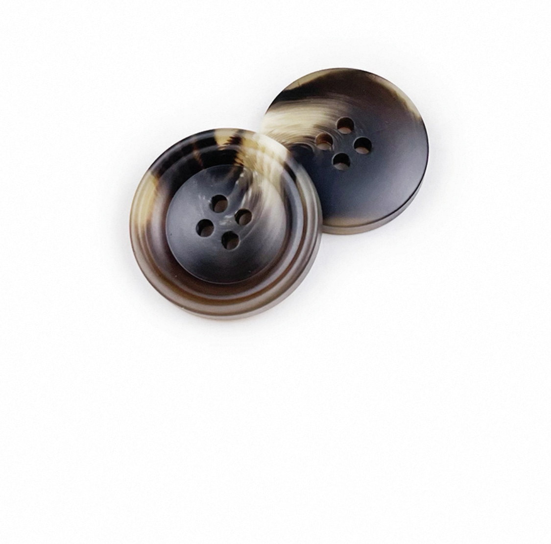 属性:此款树脂纽扣,深棕底色晕染浅棕纹理,如天然石材的独特肌理。四孔设计简约,适配西装、大衣等,为衣物增添低调质感,仿佛藏着时光打磨的故事,一颗纽扣,锁住穿搭的精致与温度
