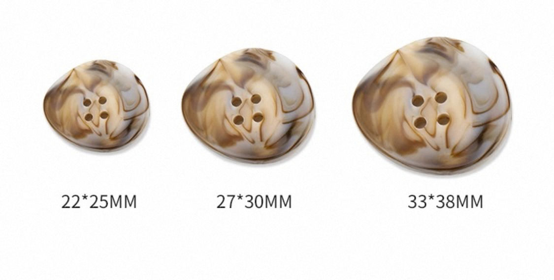 属性:异形树脂扣,浅棕与米白交融,如流动的艺术。独特纹理似天然晕染,四孔设计适配多样针线。为衣物添别致细节,于简约中藏巧思,是手工与穿搭里,点亮质感的小确幸 。