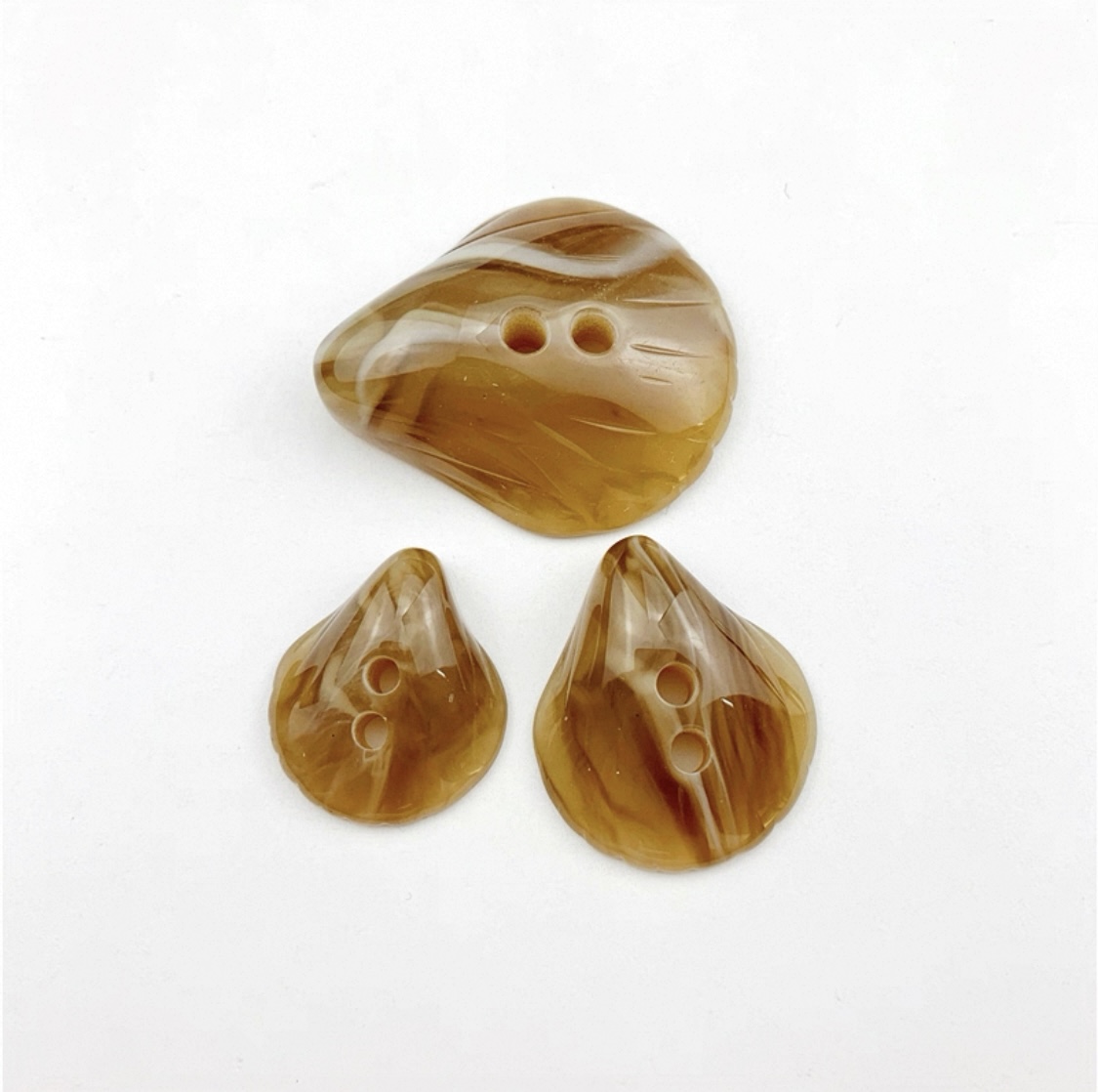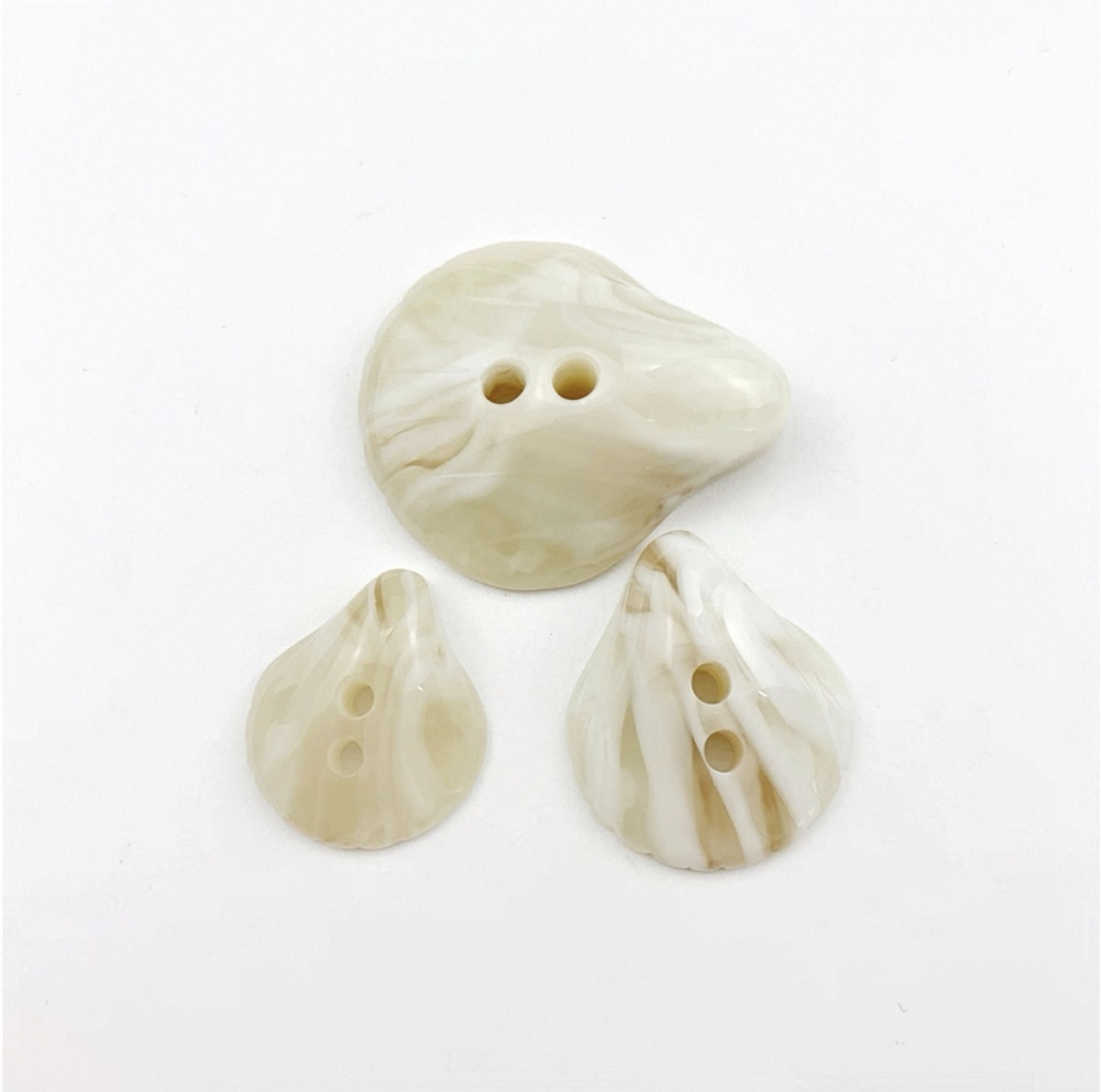 属性:这些树脂纽扣,以灵动不规则造型打破常规,温润米白底色交织自然纹理,双孔设计暗藏巧思。为衣物添独特韵味,无论是童装的童趣,还是时装的别致,都能成为点亮细节的点睛之笔 。