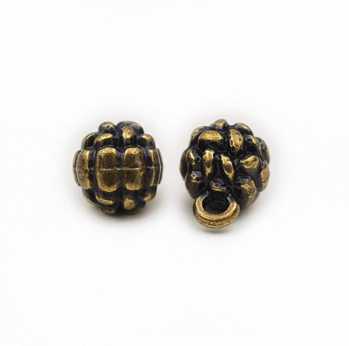 属性:复古做旧金属钮扣,黑金交织,似藏岁月故事。凹凸纹理如传统纹样,古朴中见精巧。一颗带环,为中式衣装添古韵,扣合间,让古典雅韵融入日常,是传统与时尚碰撞的别致点缀 。
