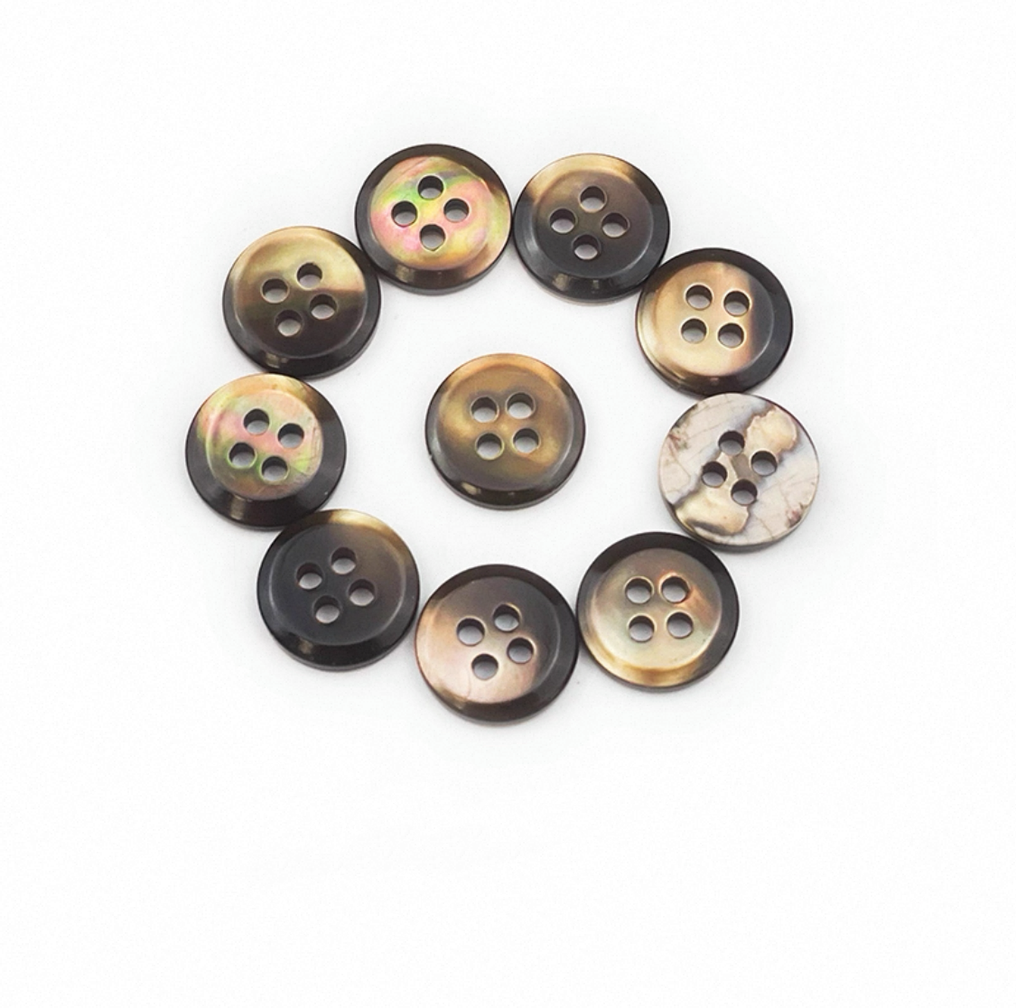属性:11.5MM 的塔罗贝壳扣,尽显精致, 有纯净白色、深邃黑彩色、沉静蓝灰 、复古咖啡色等多样选择。每一颗都带着贝壳天然的细腻纹理,在光下闪烁柔和光泽,无论是装点衬衫还是外套,都能为衣物赋予独特魅力,让细节之处满是优雅。