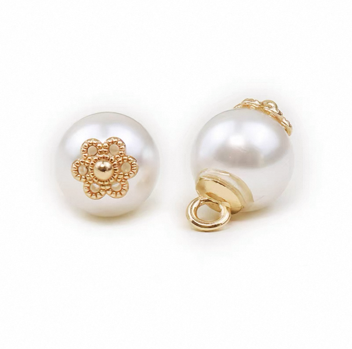 珍珠纽扣圆形扁珠粘金属花托扣子