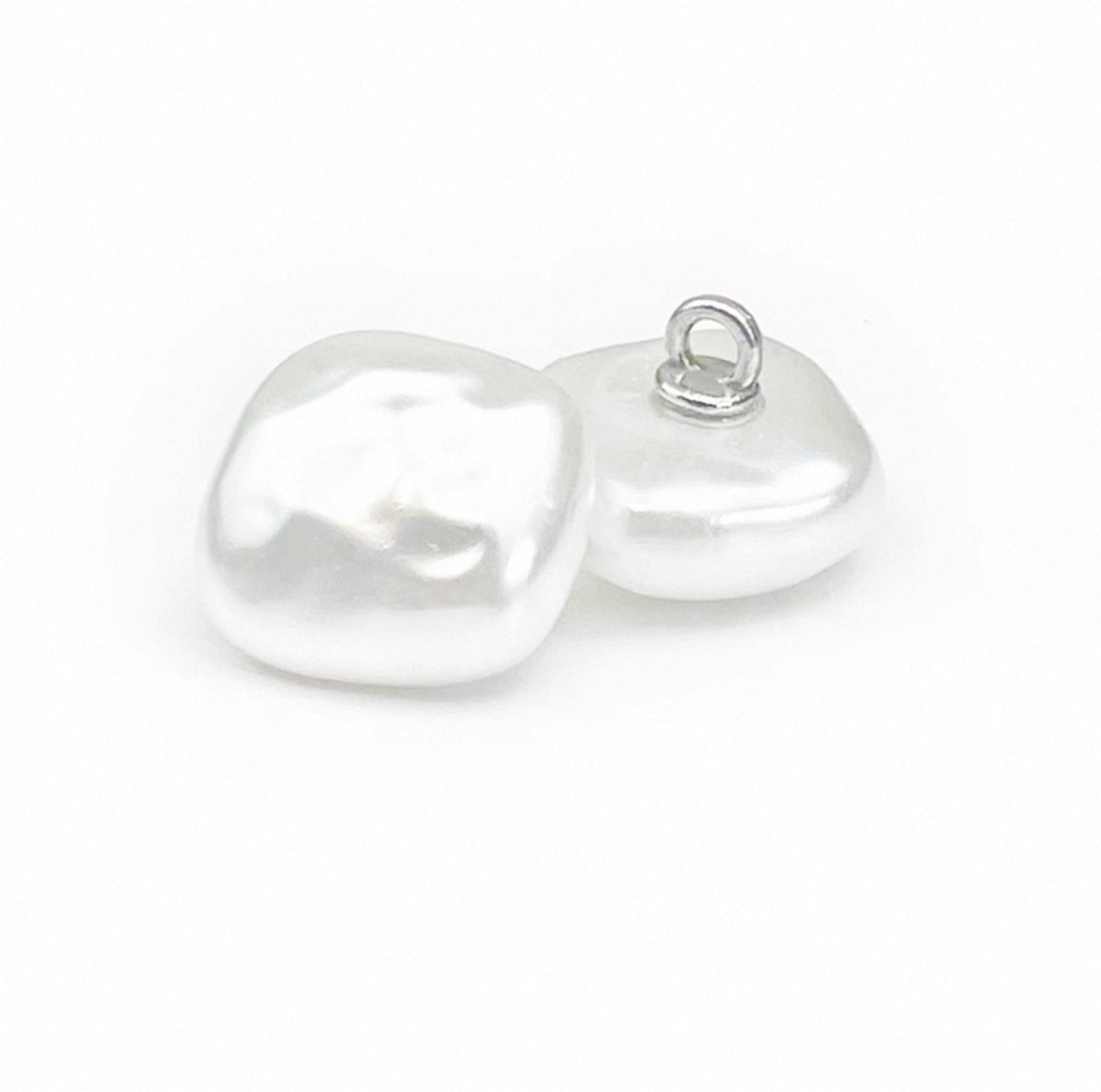 属性:打破常规,这款不规则凹凸面方形珍珠纽扣,以独特之姿惊艳亮相。纯净的珍珠白,直径达 13MM, 表面自然起伏,散发着柔和且迷人的光泽。金属小环设计,便于缝制 。无论是点缀在简约衬衫还是复古裙装上,都能瞬间提升时尚品味,成为点睛之笔。