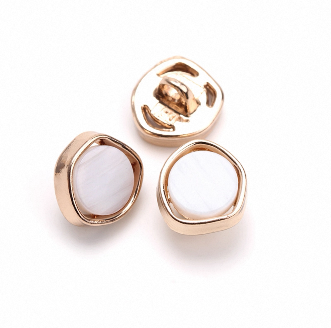 属性:小香风金属珍珠扣,10mm 精致小巧。金底白色款,闪耀优雅;枪色白色款,酷飒别致。金属边框包裹温润贝片,适配衬衫、外套,一颗点亮穿搭,让细节藏满高级感,轻松拿捏小香风的精致与腔调.