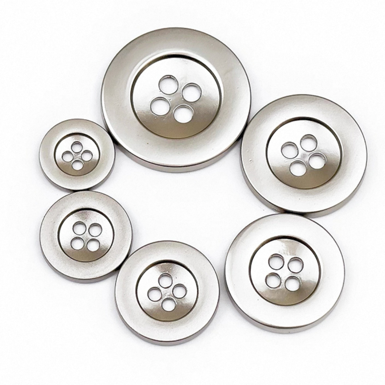 属性:时尚圆形四眼金属宽边纽扣,亮银 / 雾银 / 亮金 / 雾金 / 枪黑多色可选, 宽边设计简约大气,金属质感自带高级感,适配西装、衬衫等各类服饰。一颗纽扣,就能为穿搭注入精致灵魂,轻松拿捏时尚格调。