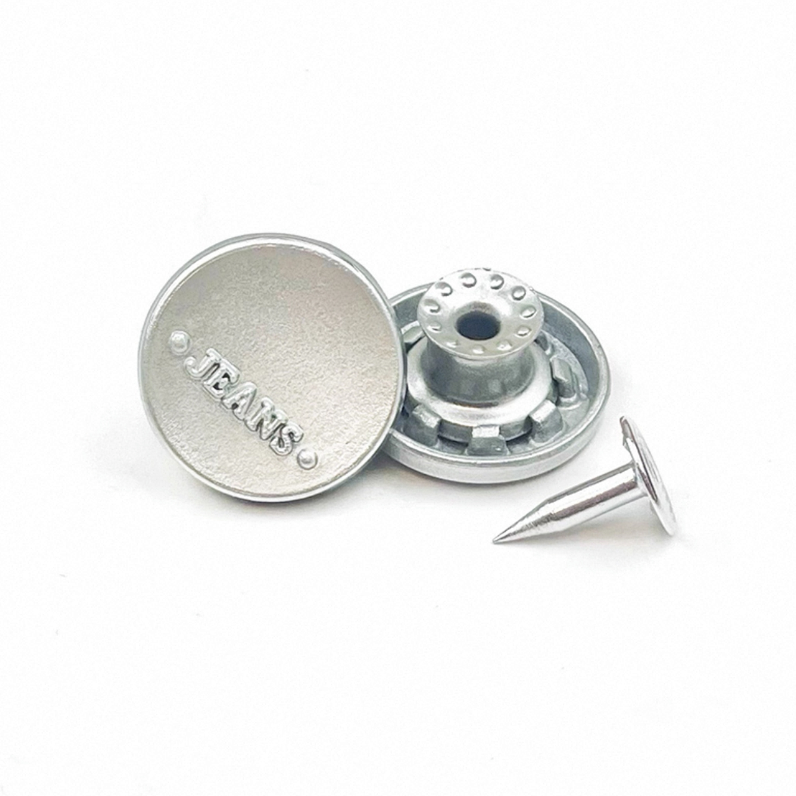 属性实心款雾银摇头工字扣,直径 17MM ,金属质感高级。“JEANS” 字样经典,适配牛仔裤,摇头设计灵活,加固裤腰又添复古潮味,轻松修复或升级你的牛仔单品,实用与颜值双在线。