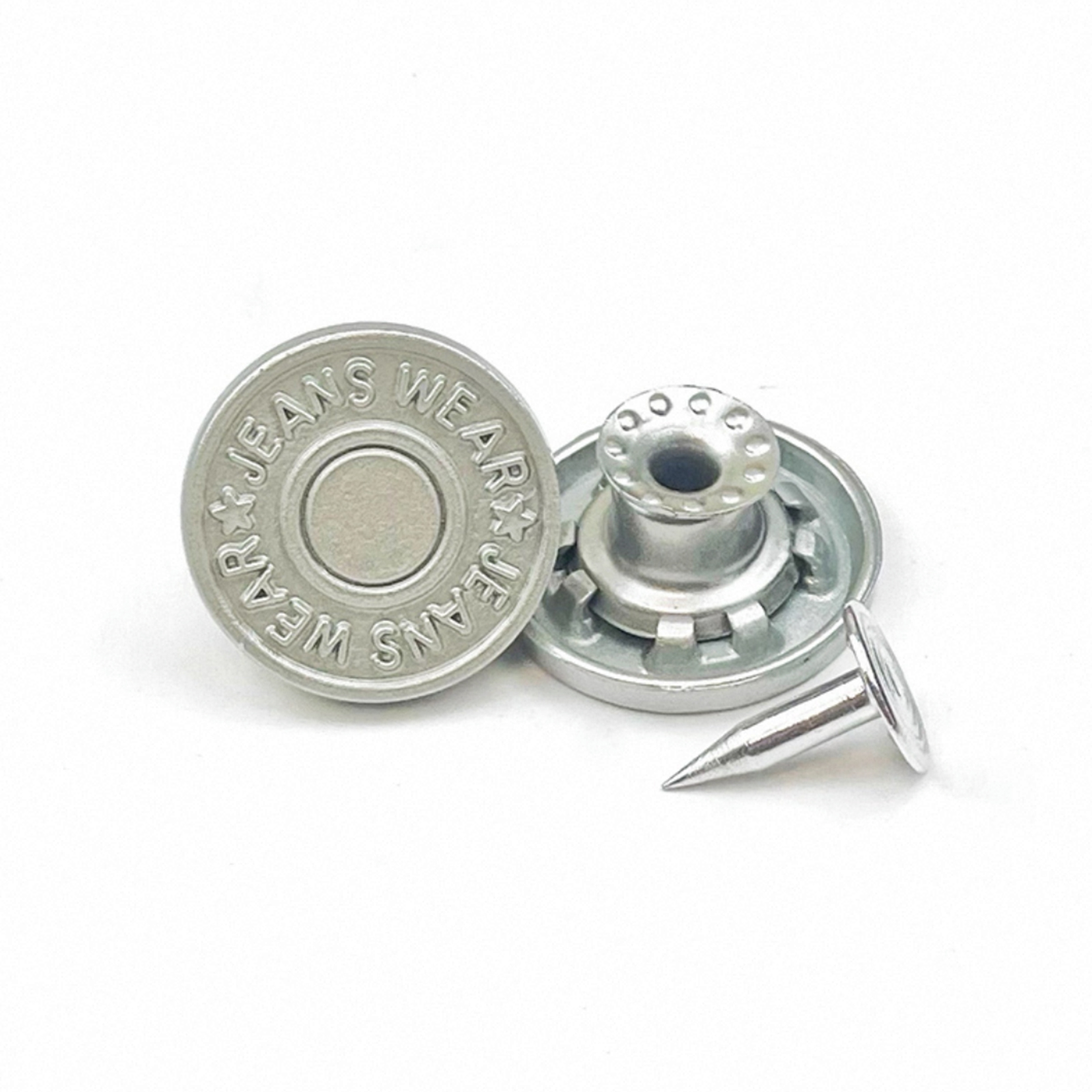 属性:实心款雾银摇头工字扣,17MM 超适配牛仔裤!“JEANS WEAR” 环绕刻字,复古腔调拉满,雾银质感高级又耐磨。摇头设计灵活牢固,轻松替换旧扣,给牛仔单品注入灵魂细节,让日常穿搭藏着不费力的时髦。