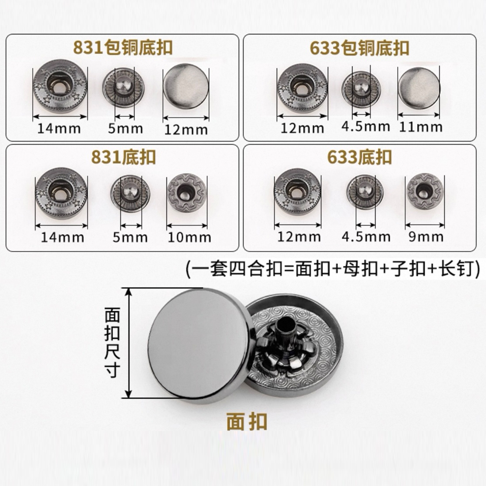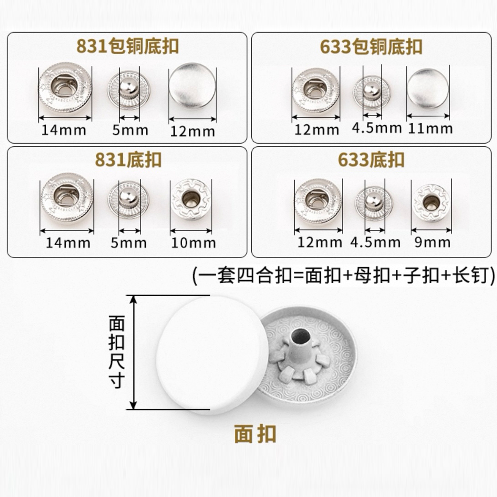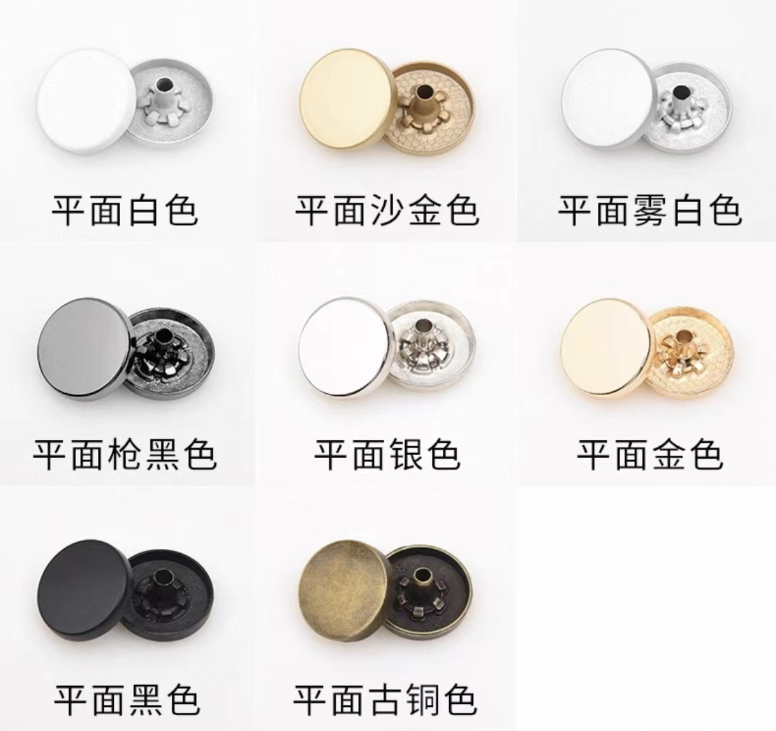 属性:这些平面四合扣,色彩多样,从简约白到复古古铜色,适配不同风格衣物。安装便捷,扣合牢固,为服装增添精致细节,无论是日常穿搭还是手工制衣,都是实用又美观的小配件,轻松提升衣物质感。