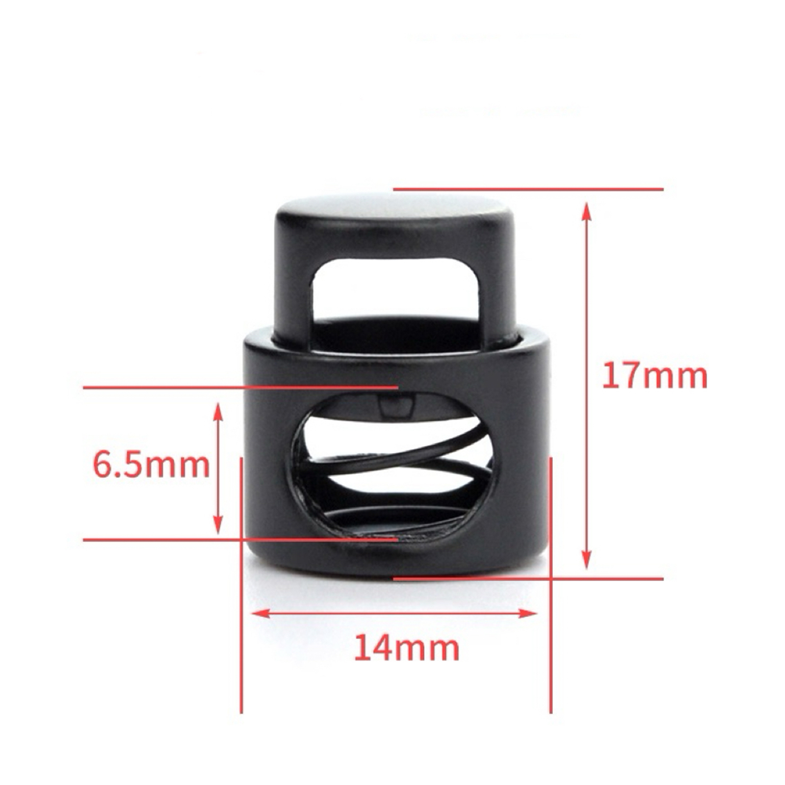 属性:简约黑色金属弹簧扣,尺寸精准:高 17mm、宽 14mm ,6.5mm 细节藏巧思。弹簧结构灵活,穿绳即用,轻松调节松紧,适配衣帽、箱包等,以小见大,用利落设计为物件注入实用美学。