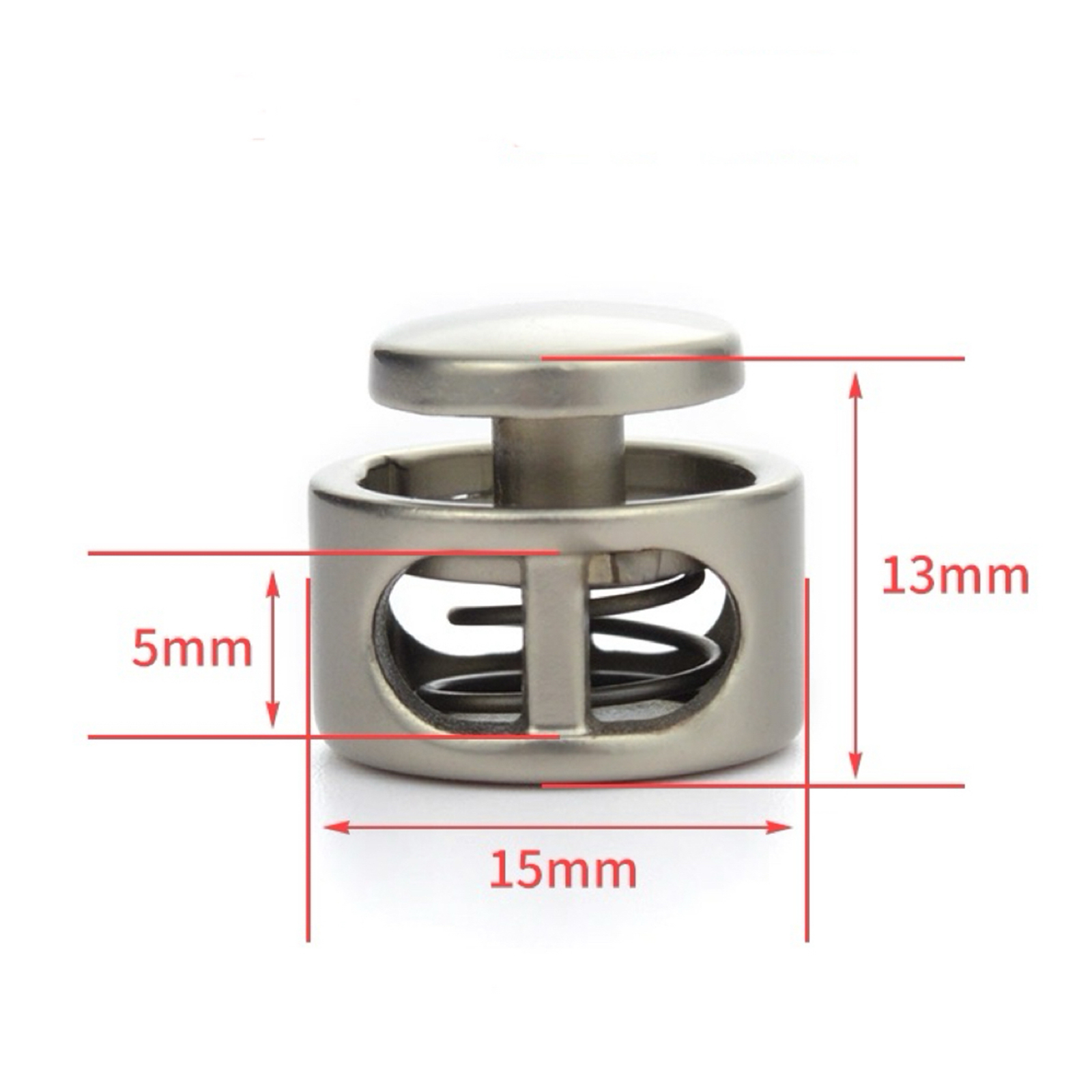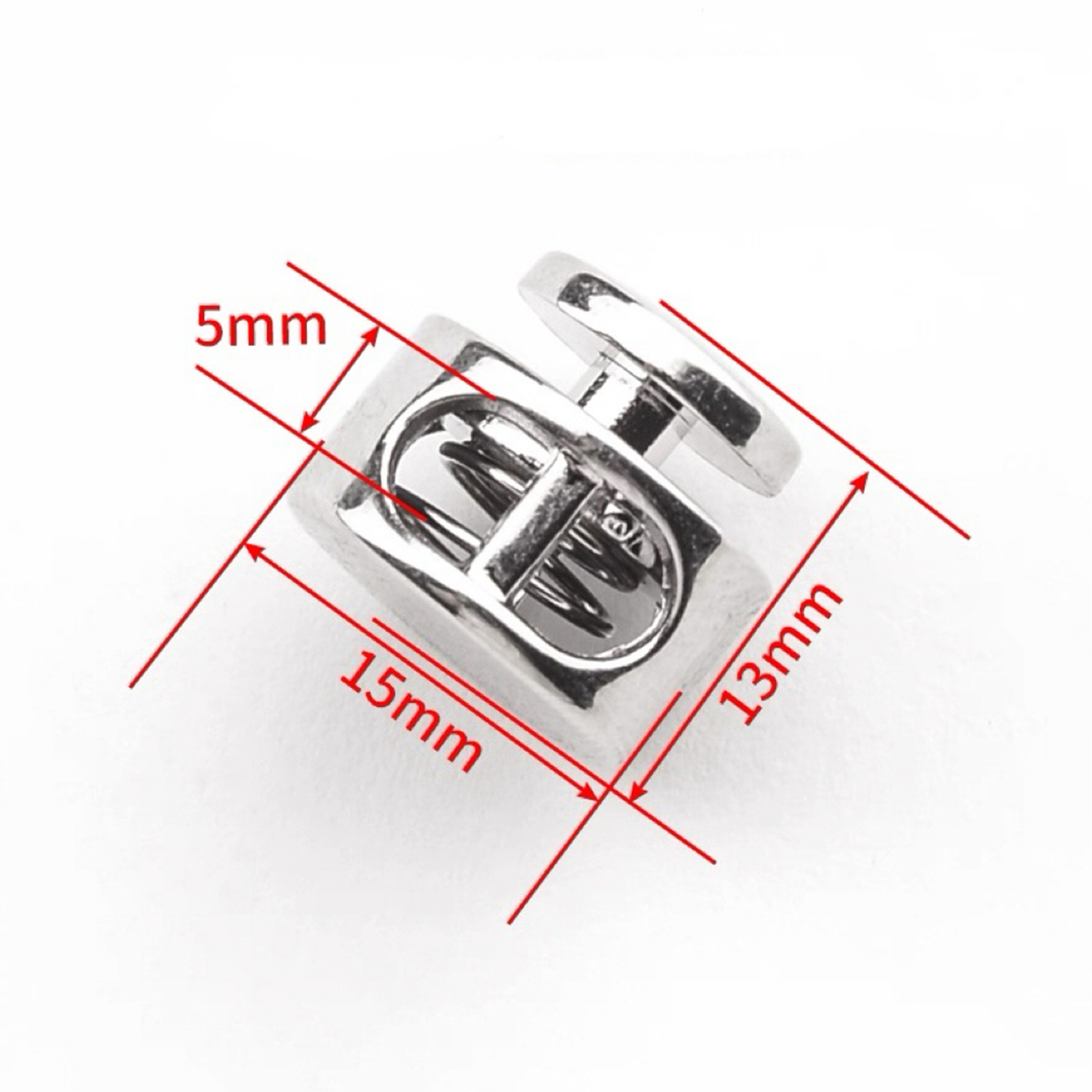 属性:精致金属弹簧扣,多色可选适配多样风格尺寸小巧(15×13×5mm 等),弹簧结构灵活耐用,轻松调节绳带松紧,为包包、衣帽注入实用巧思,以细节之美,点亮手工与穿搭。