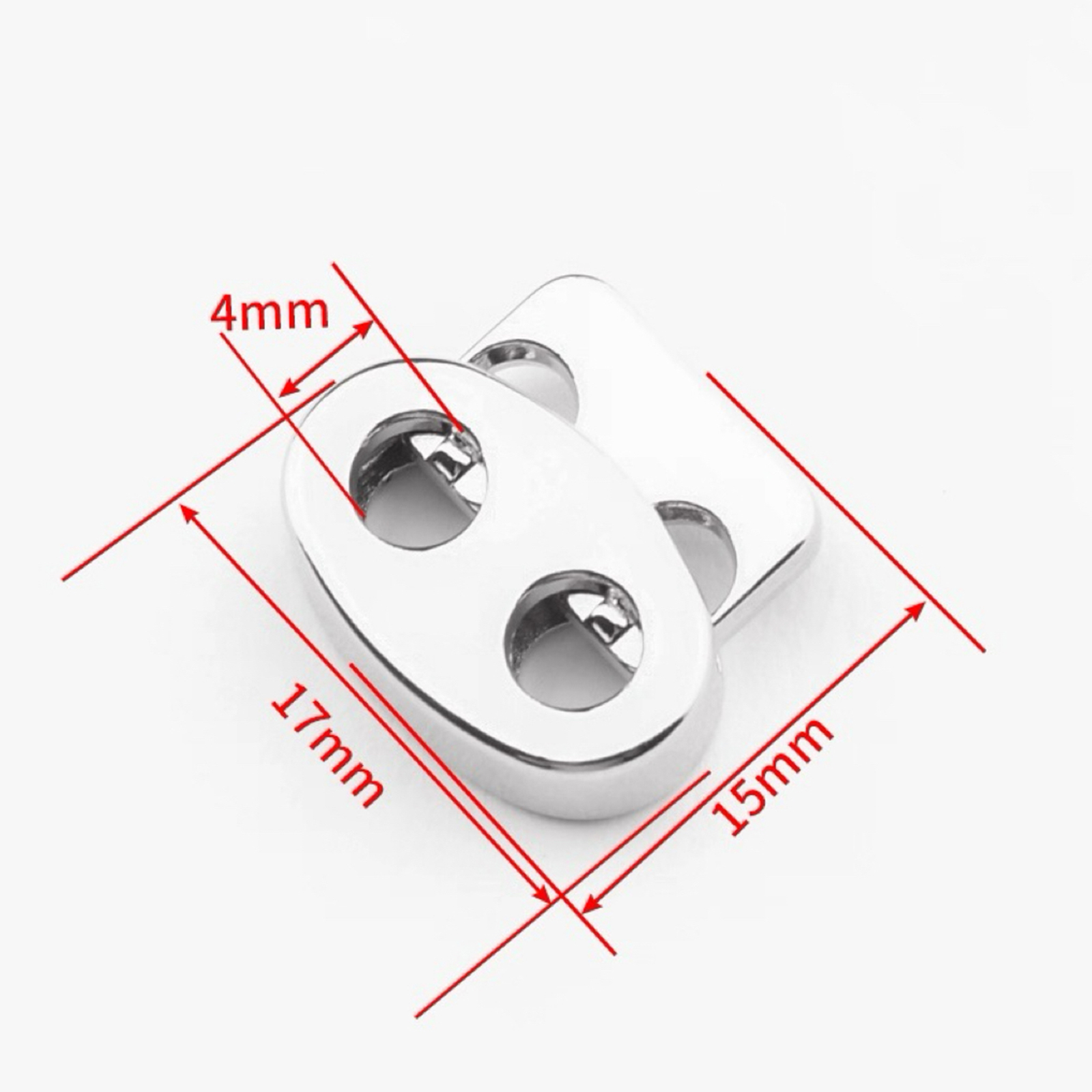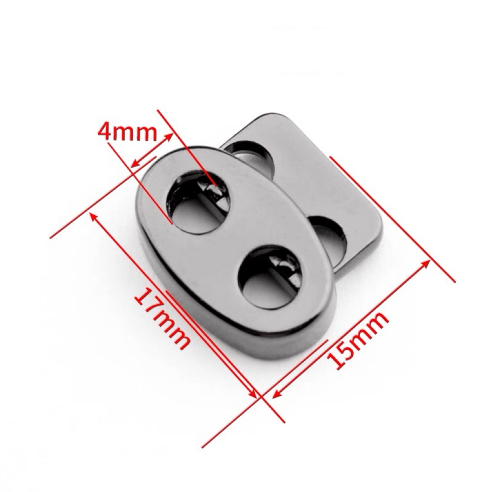 属性:金属弹簧扣,多色(黑、银、枪色、浅灰 )可选,尺寸精准:长 17mm、宽 15mm,4mm 巧思设计。双孔适配绳带,弹簧灵活,轻松调节松紧,为衣帽、箱包添实用精致,小配件大作用。