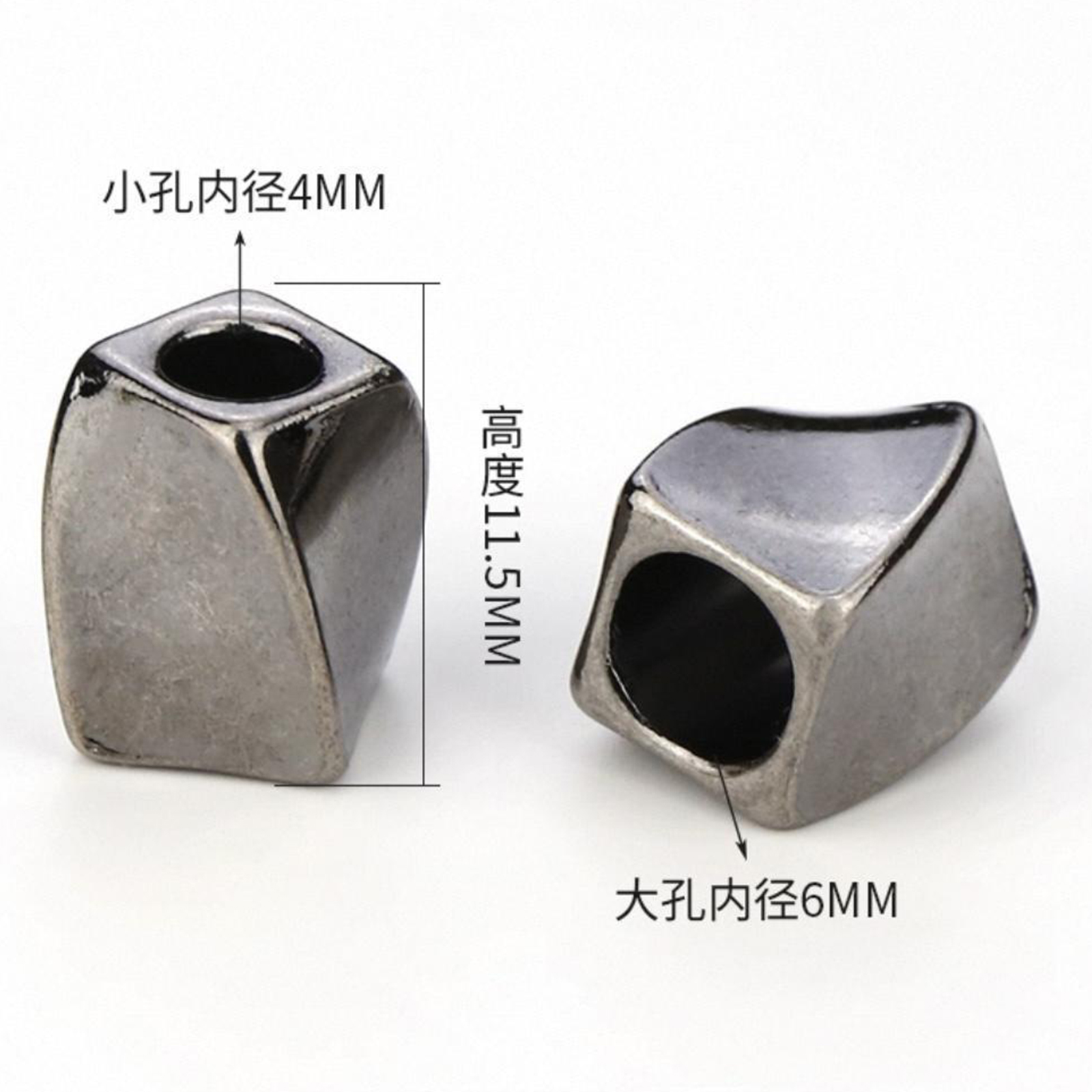 属性:金属吊钟,独特不规则几何造型,枪色质感拉满, 小孔 4mm、大孔 6mm,高度 11.5mm ,适配细绳。用在包包、服饰绳带处,既是实用束紧扣,又能当个性装饰,为单品注入别致巧思。