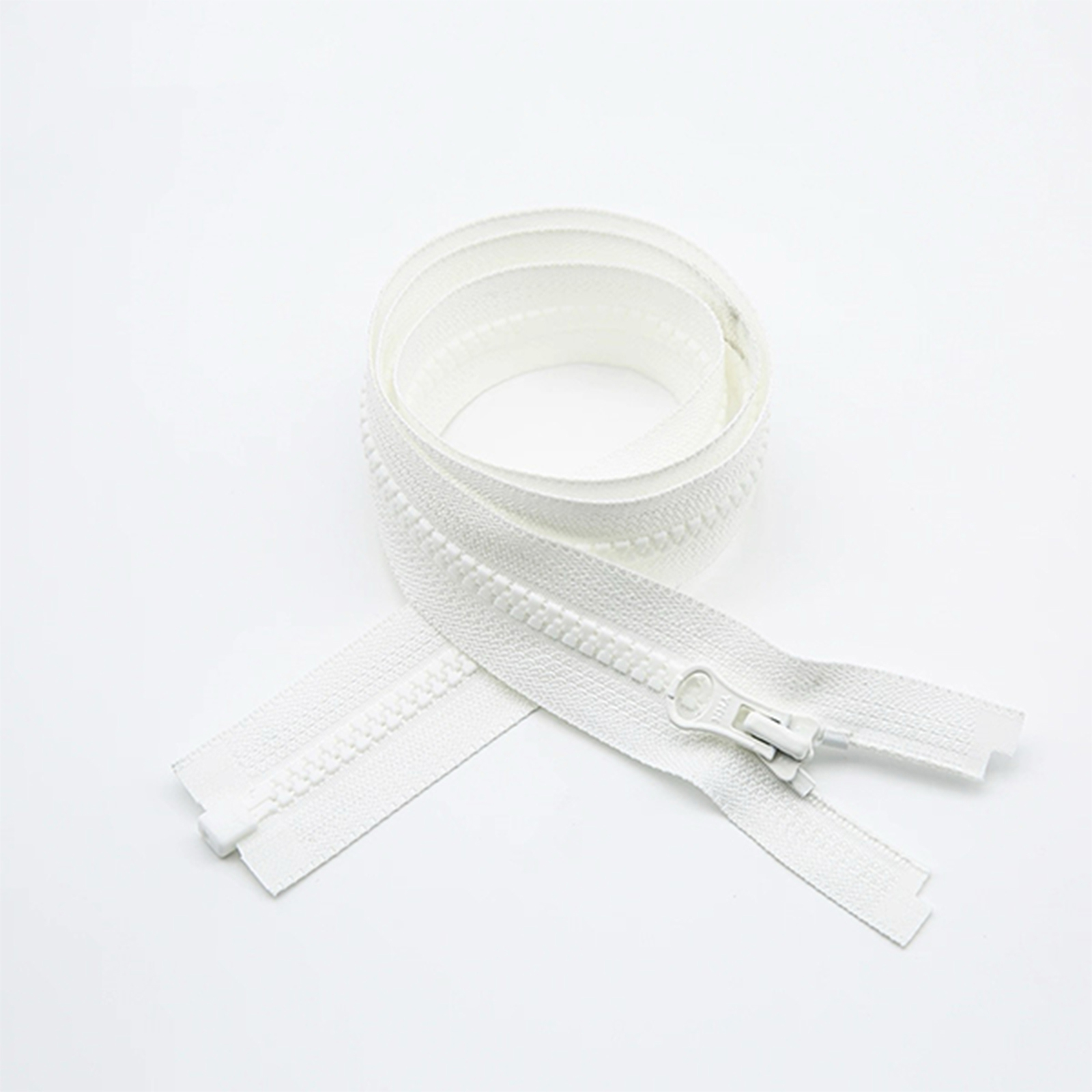 属性:优选高韧性环保树脂,经精密注塑成型链牙,耐磨抗折且不易变形,低温环境下仍保持柔韧。开尾结构搭配顺滑插销,插拔轻松不卡滞,适配外套、童装等需便捷穿脱场景。拉头内置防滑锁止,闭合后稳固防滑,兼顾轻盈质感与实用属性,为服饰细节注入可靠便捷性。