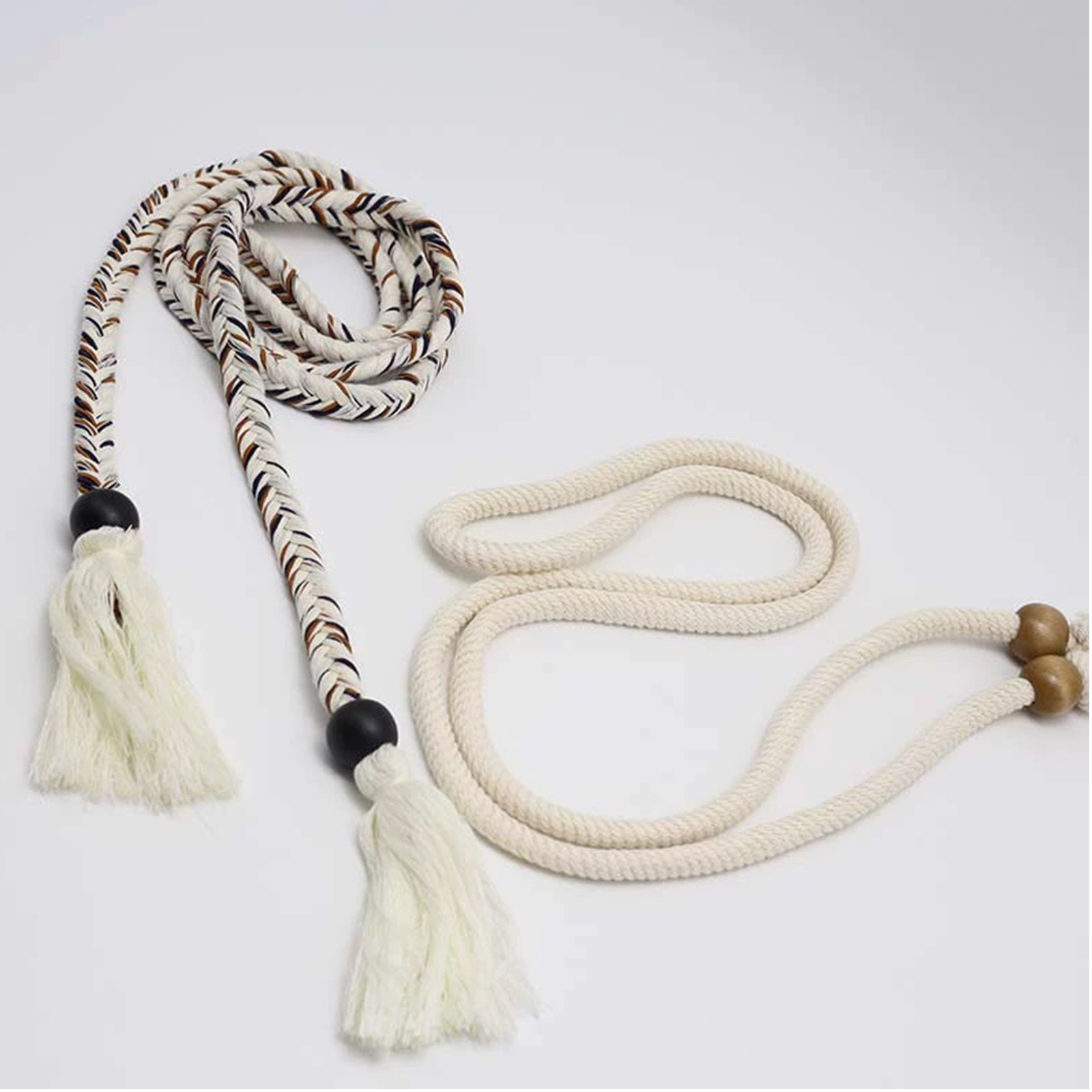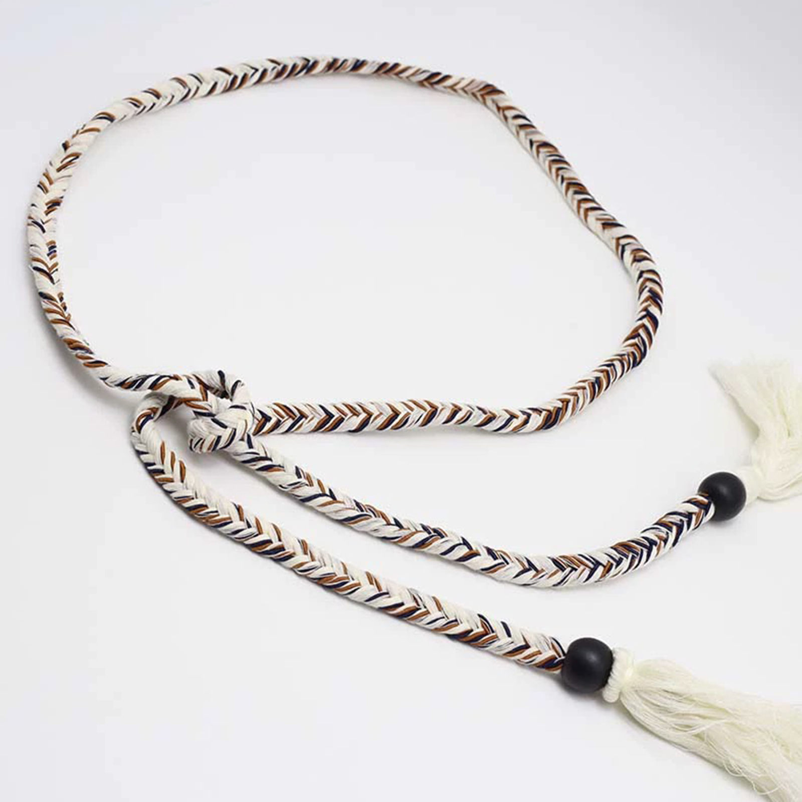 属性:想要为穿搭增添一抹民族风情?来看看这款民族风手工编织亚克力平结抽绳!一款是简约米白色系,搭配温润木珠,尽显质朴纯粹;另一款以个性编织纹路示人,黑白棕交织,搭配黑色亚克力珠与飘逸流苏,灵动又吸睛,无论是搭配裙装还是裤装,都能瞬间提升时尚感。