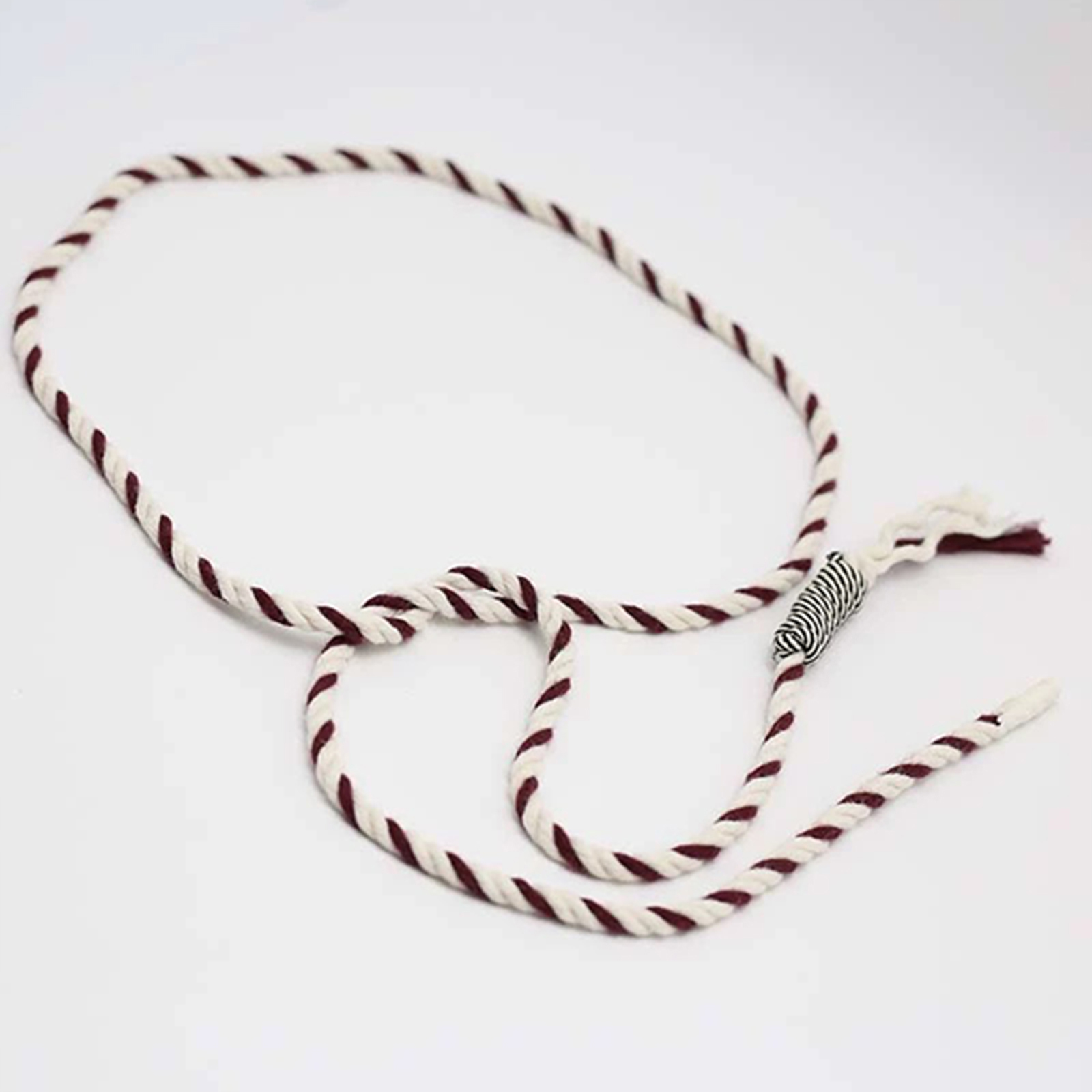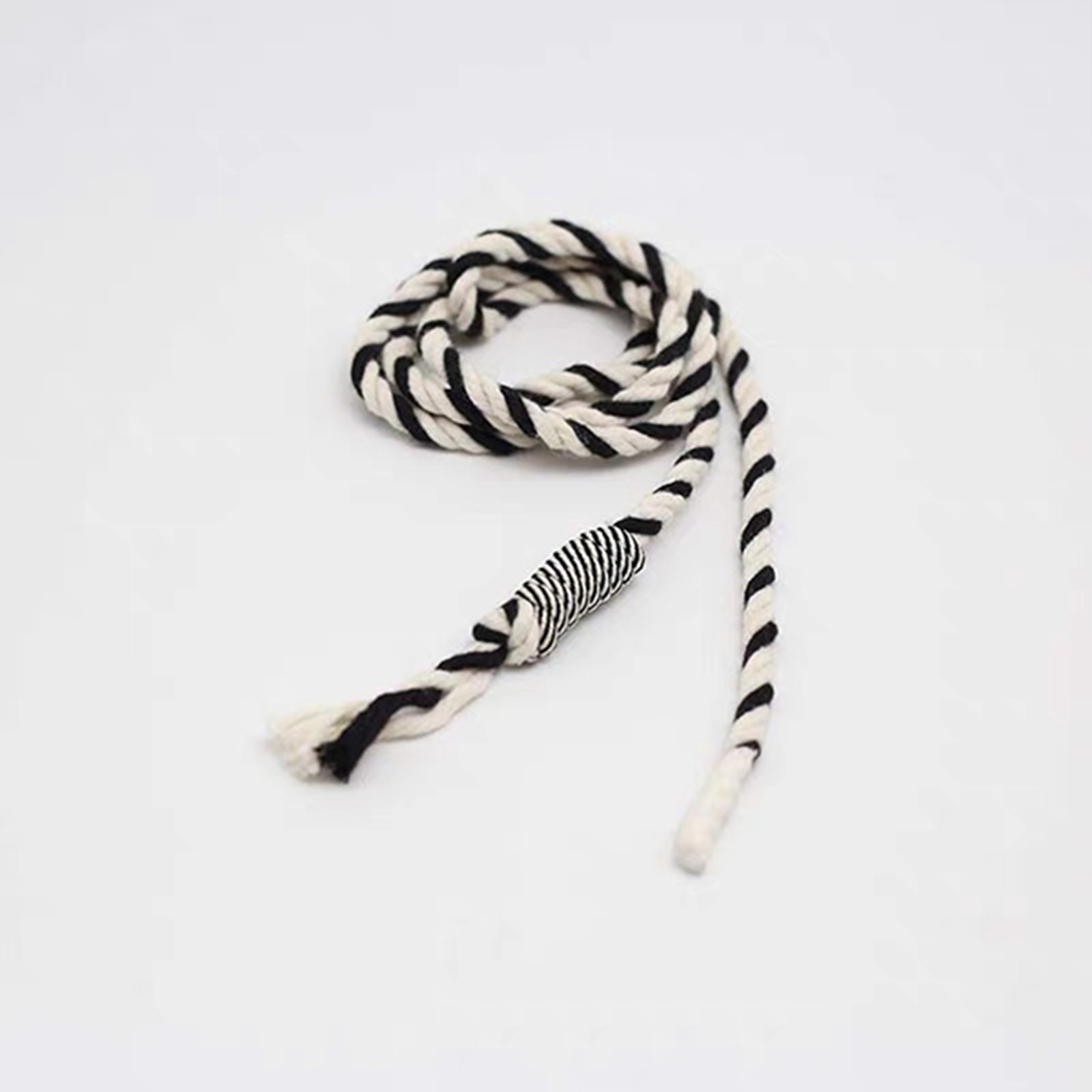 属性:三股彩色编织抽绳,简直是穿搭的点睛之笔!黑与白、红与白、灰与白、蓝与白,多组撞色搭配,亮眼又吸睛。三股编织工艺让绳身更扎实,末端独特的缠绕设计与流苏,细节满满。不管是搭配卫衣、外套,还是装饰包包,都能轻松提升时尚感,为你的造型注入活力。