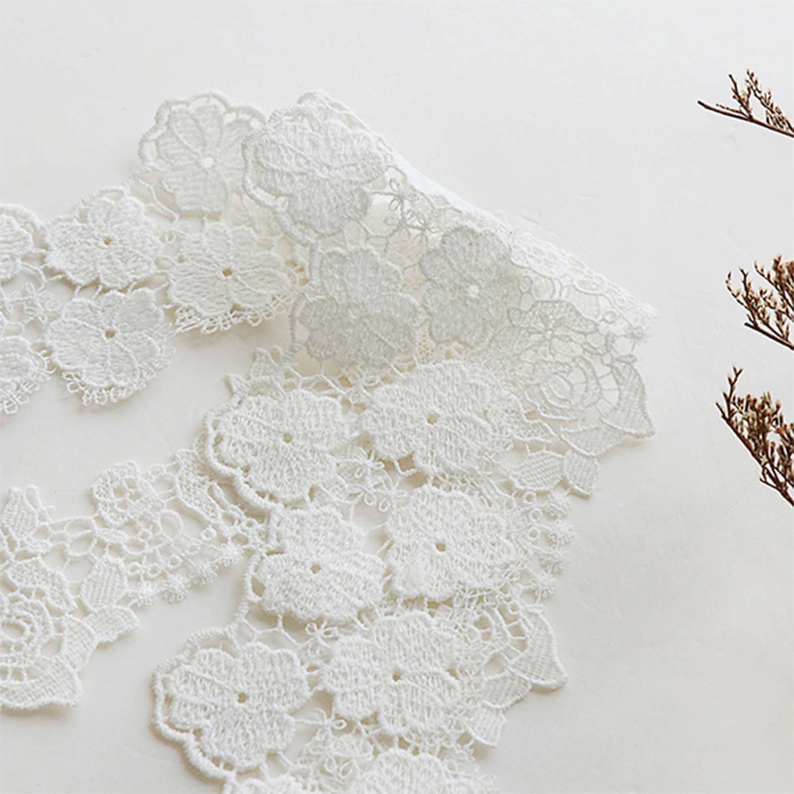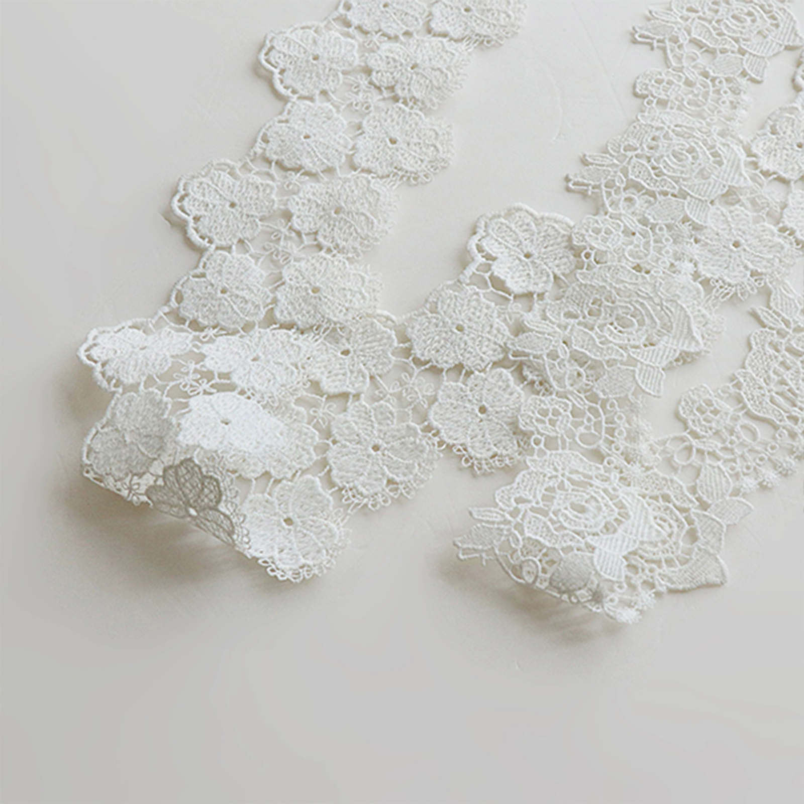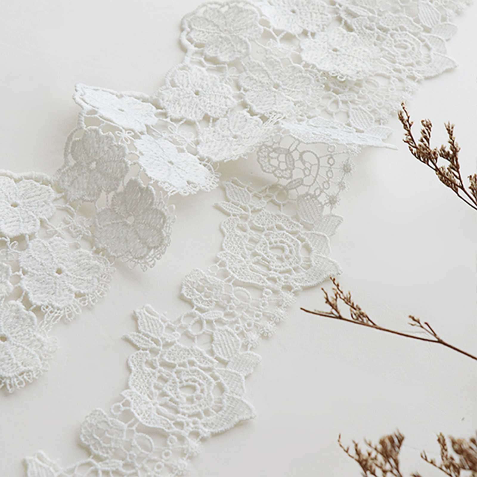 属性:一袭纯净,满是优雅,这款纯白色水溶花边,是精致的代名词。细腻的丝线交织出栩栩如生的花朵与繁复纹路,如春日里绽放的烂漫花海。无论是为婚纱勾勒梦幻轮廓,还是为衬衫领口增添柔美风情,亦或是点缀于手帕之上,都能凭其纯粹之美, 瞬间提升格调,演绎无尽浪漫。
