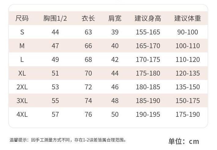 尺码:S / M / L / XL / 2XL / 3XL / 4XL