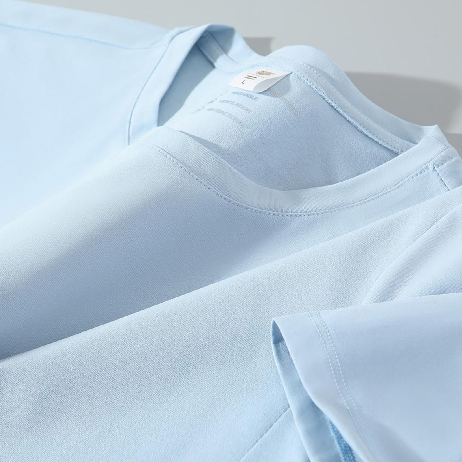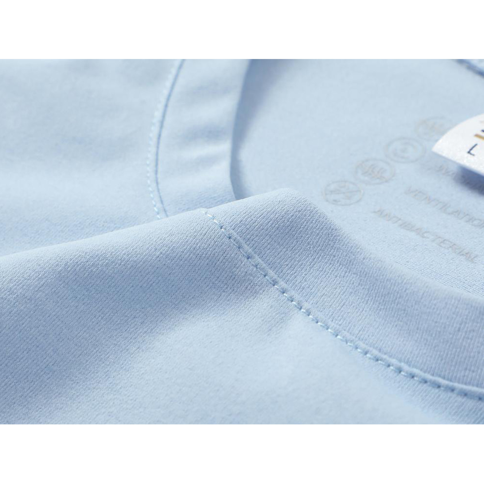 属性:专属的腋下透气孔设计,进一步加强了空气流通,有效排出闷热湿气。同时,面料通过7A级物理抗菌处理,能高效抑制常见细菌,并经多次洗涤后仍保持优异的抗菌效果。整体面料集高效导湿、强化透气与持久抗菌于一体,兼顾轻盈体感与健康呵护。
