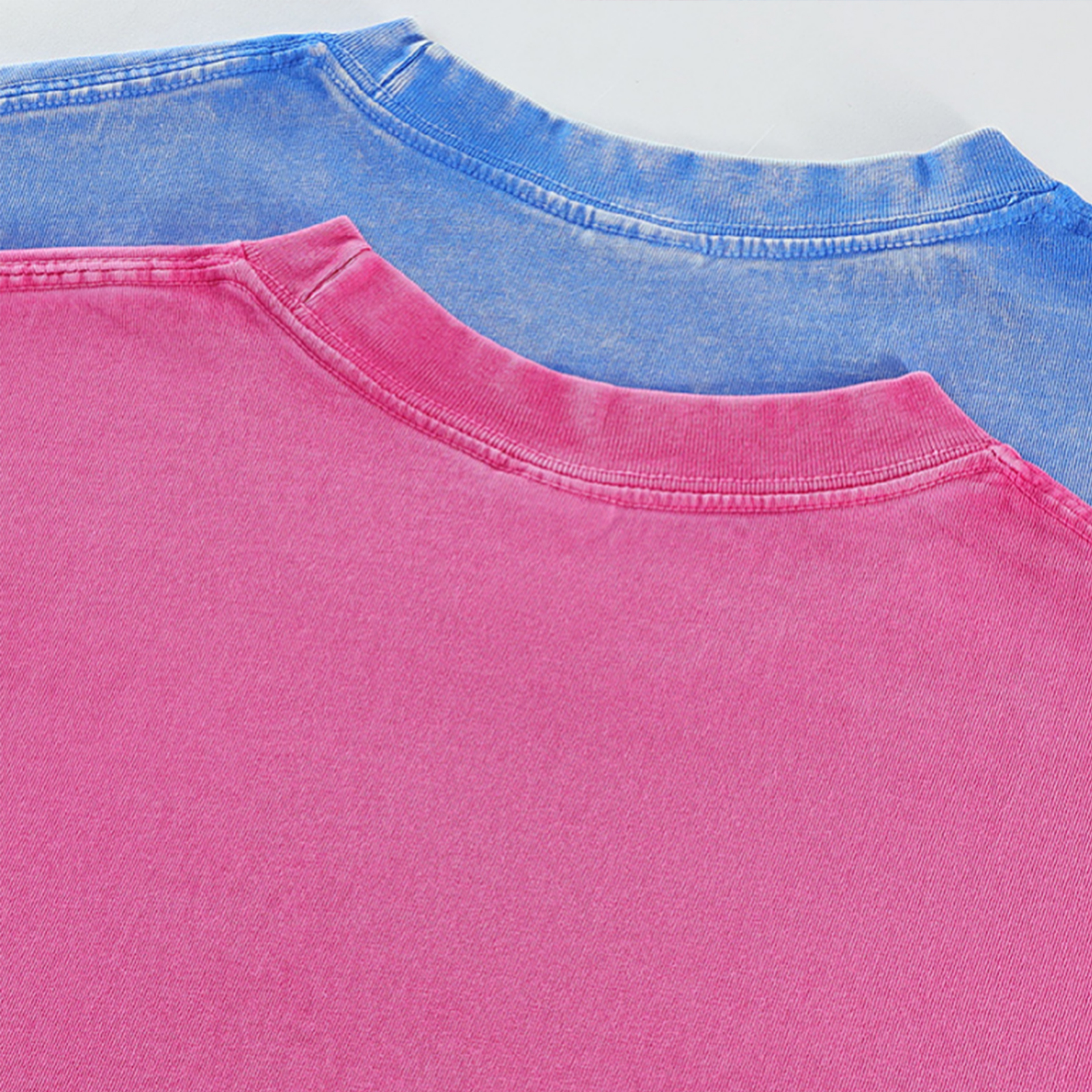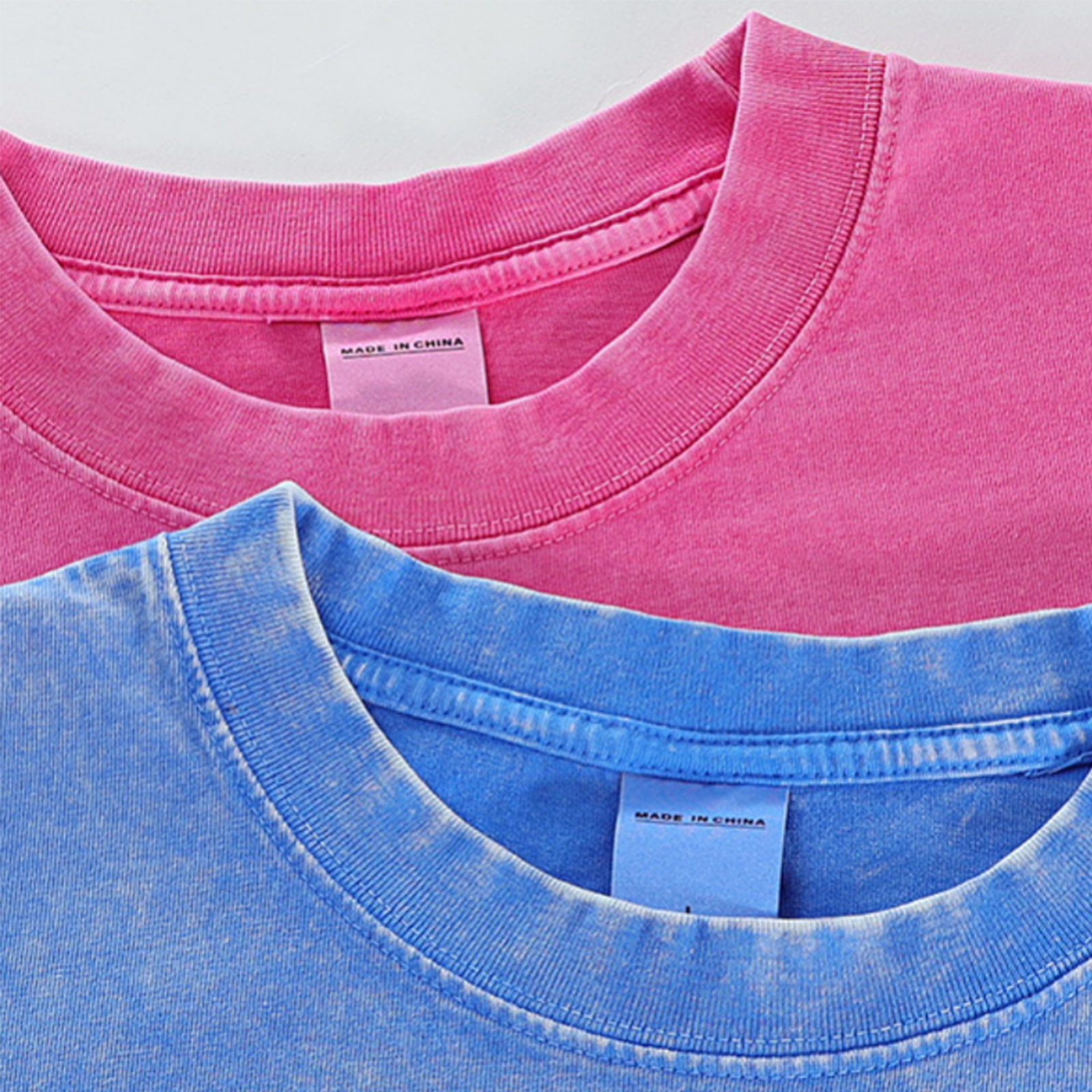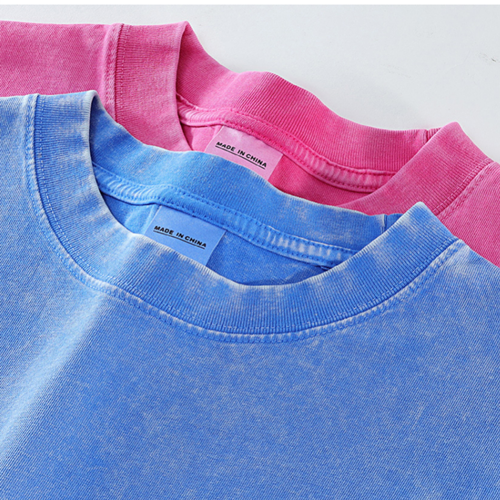 属性:经过特殊水洗与蜡染工艺处理,呈现出深浅不一的独特色落层次与哑光光泽,触感质朴柔软。面料在保留纯棉优异透气性与亲肤感的同时,具备良好的抗皱性与耐用度,成衣版型稳定,视觉质感出众。