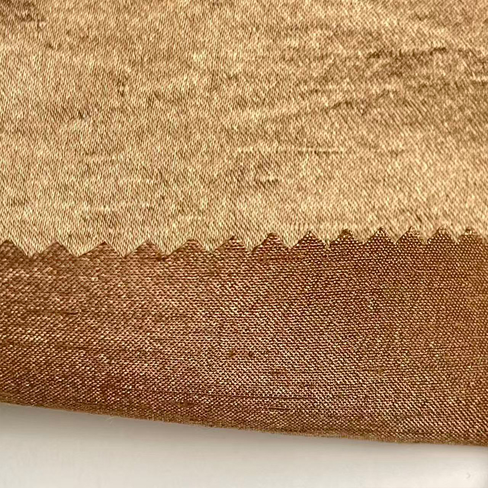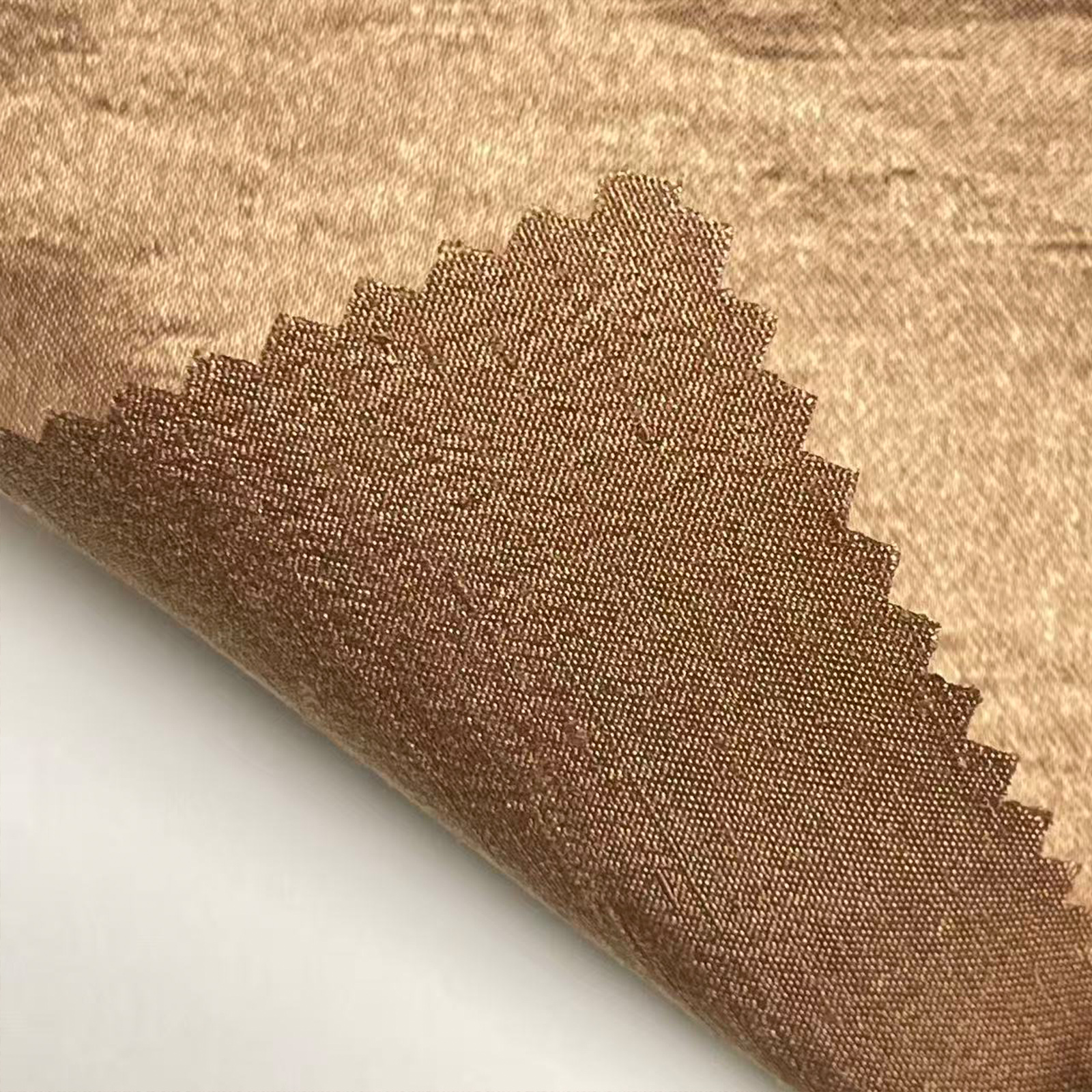 属性:咖色系,自带细腻柔和微光,缎面质感顺滑垂坠。面料挺括抗皱、色牢度高、亲肤无刺激,适配舞台演出服。