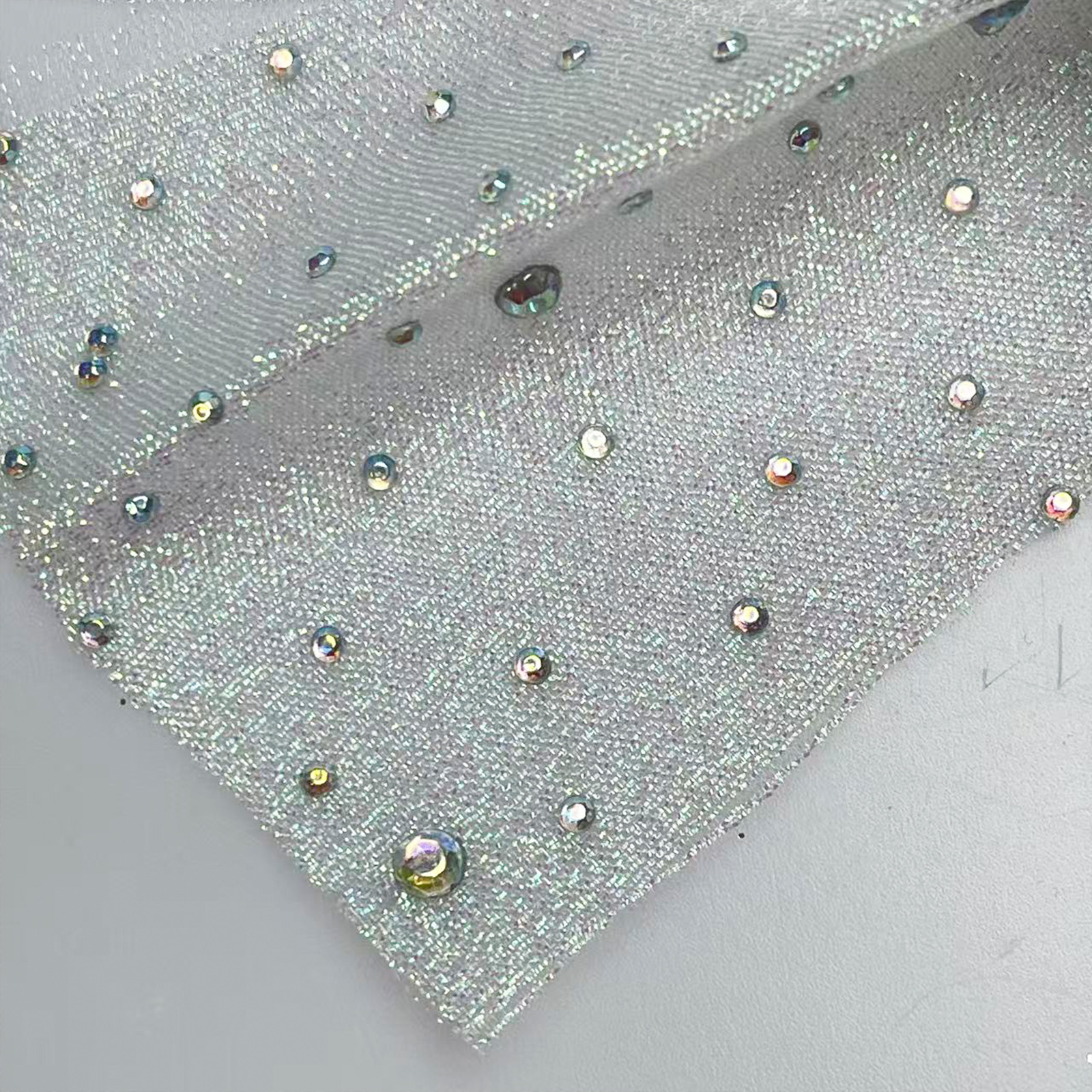 属性:流光溢彩、多角度变色。质地轻盈通透、挺括易造型,反光强烈、舞台吸睛。耐磨不掉钻,透气舒适,专为演出礼服、舞台造型设计,炫彩夺目。