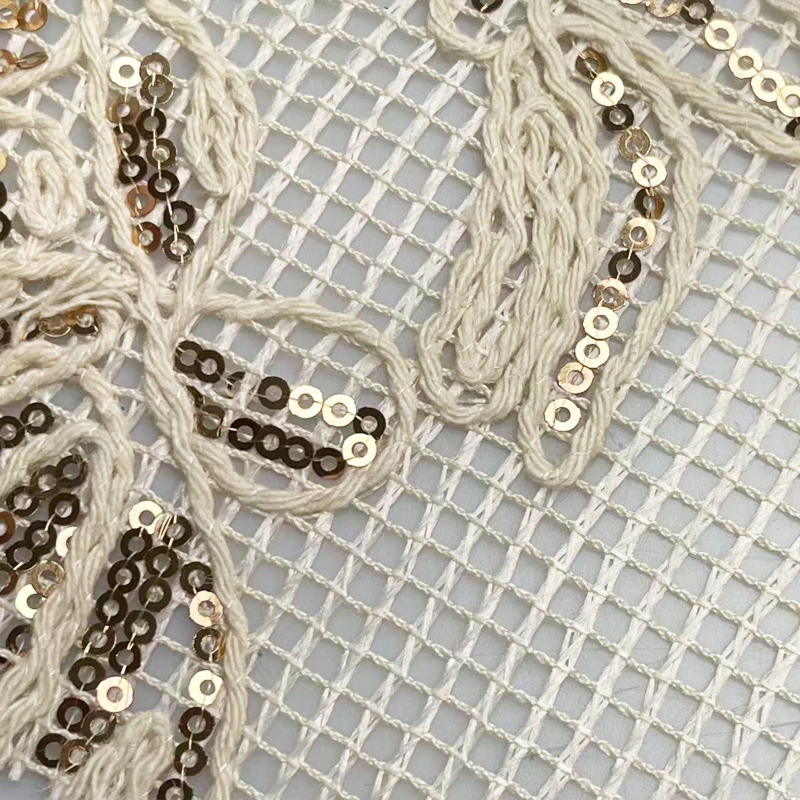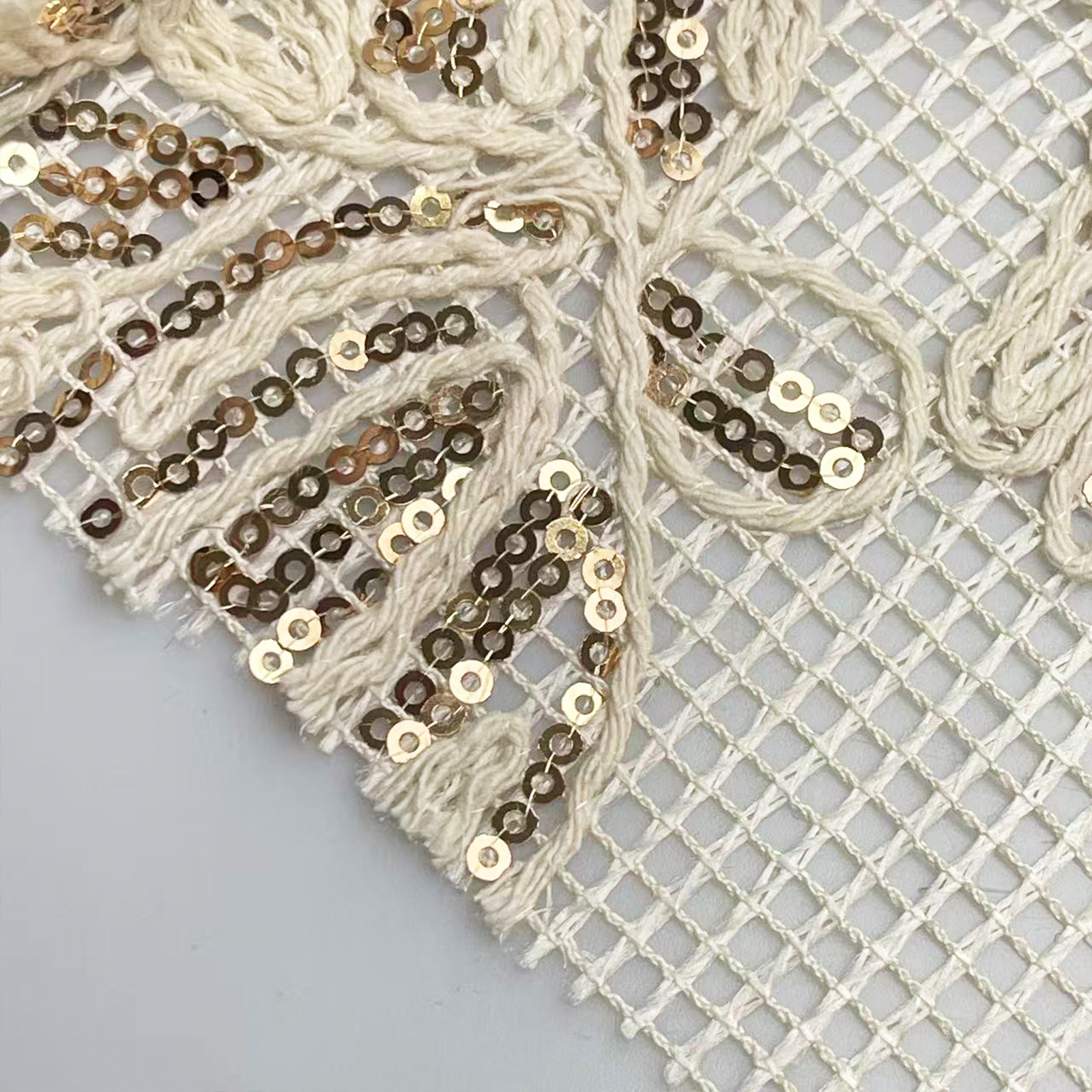 属性:面料耐磨有型,缀饰亮片增添闪耀质感,复古与轻奢兼具。适用于个性时装、外套、舞台服饰及创意装饰面料制作。