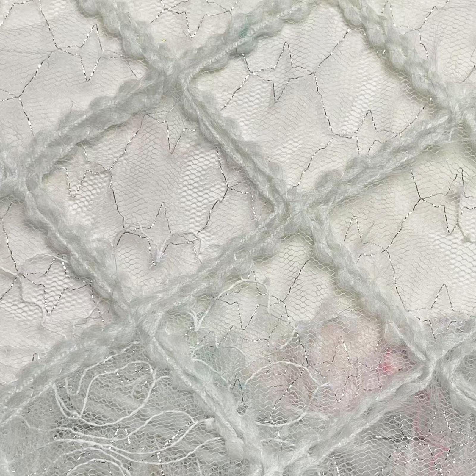 菱形格纹银丝网纱面料