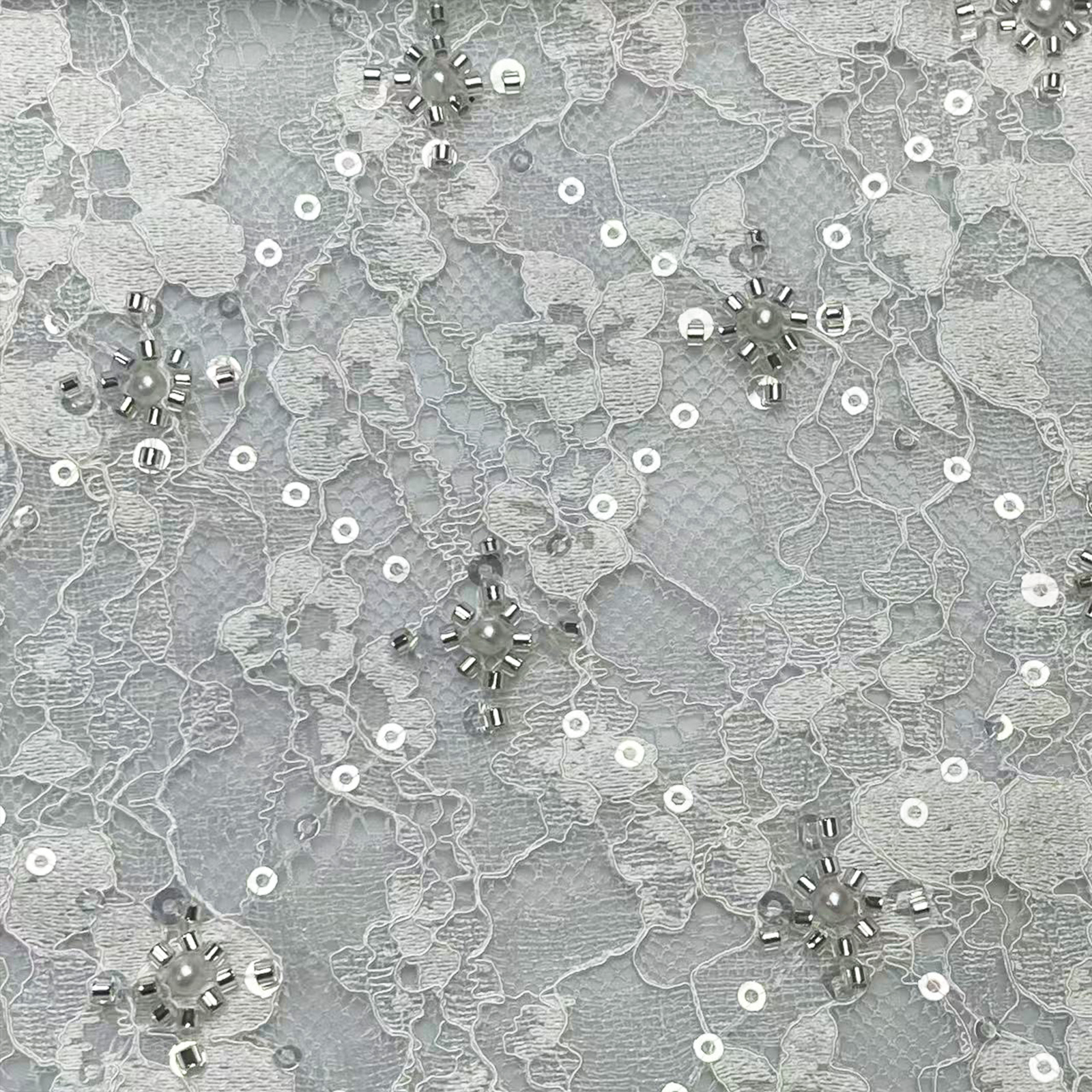 属性:通透轻盈、透气柔软,格纹规整、提花立体,珠片牢固闪耀,光泽华丽,垂坠性佳,适用于礼服、舞台装、轻奢女装。