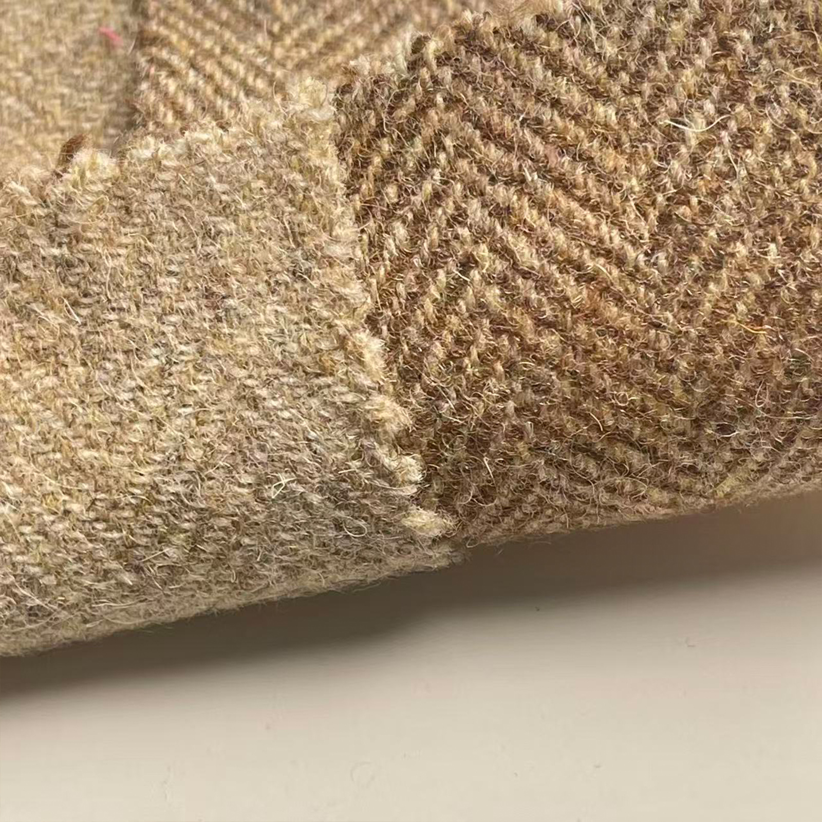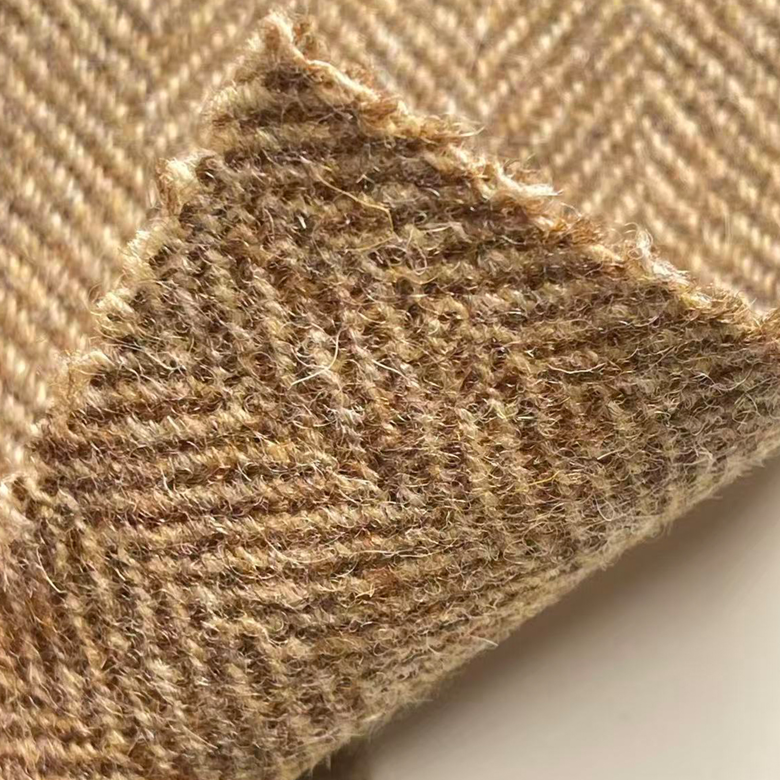 属性:人字肌理清晰挺括,面料密实细腻,手感温润软糯,保暖性出众,垂坠有型、抗皱保形,光泽自然柔和,质感醇厚高级,适合制作高端秋冬大衣与西装外套。