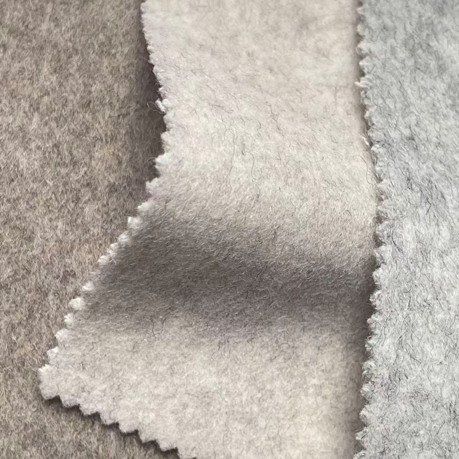 属性:绒面短顺服帖、肌理细腻平整,手感柔润顺滑,保暖均衡舒适,垂坠自然挺括,版型稳挺抗皱,质感温润雅致,适配秋冬通勤大衣、西装与外套。