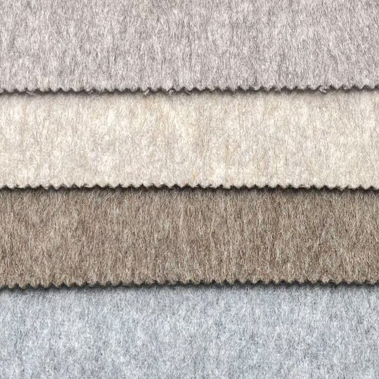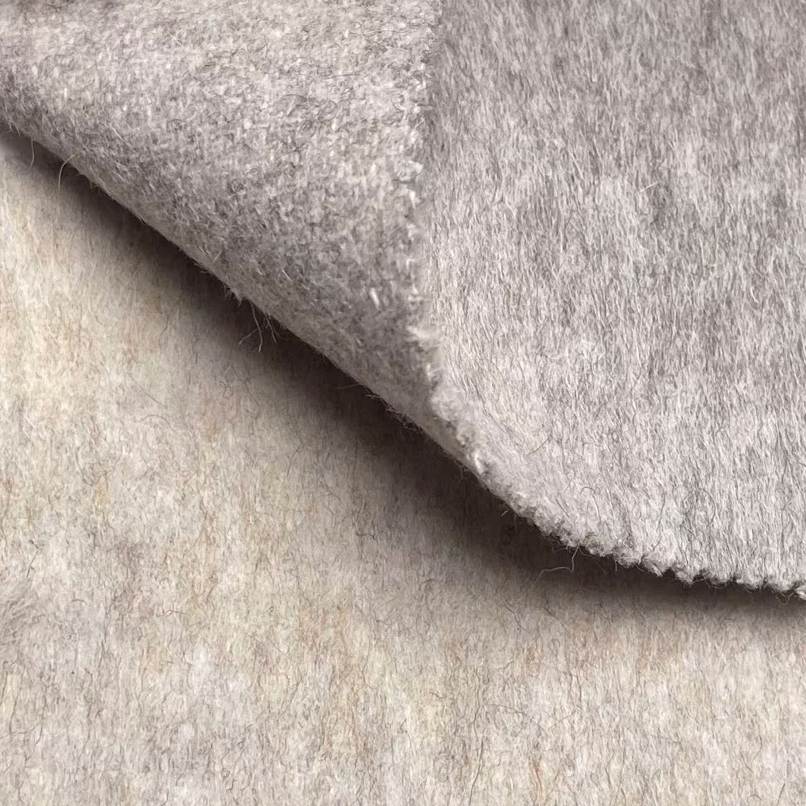 属性:绒面顺滑服帖、肌理细腻,触感柔糯蓬松且自带柔光质感;是冬季高端大衣、廓形外套的奢选面料。