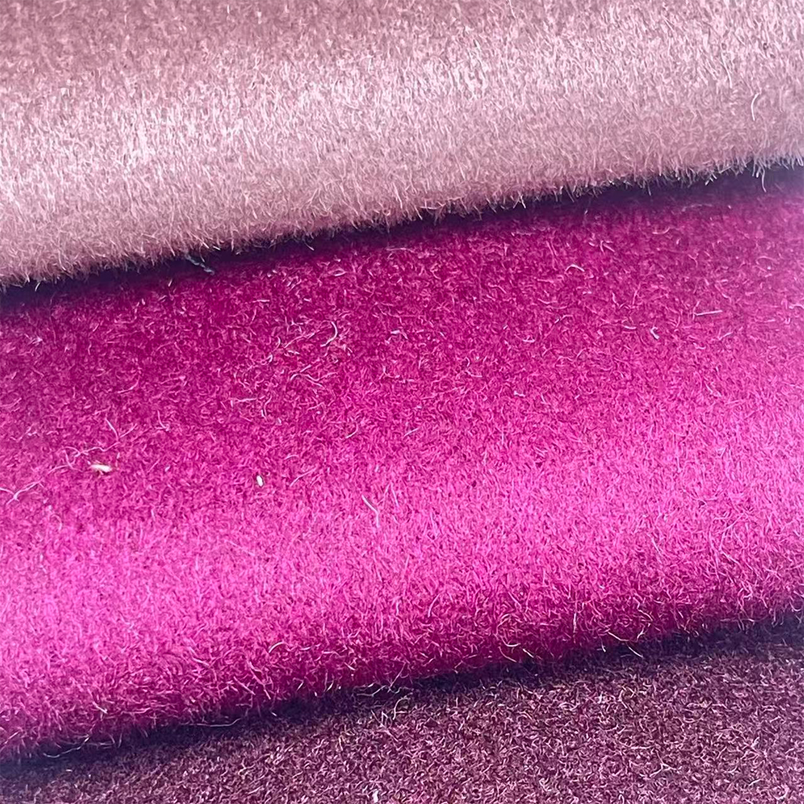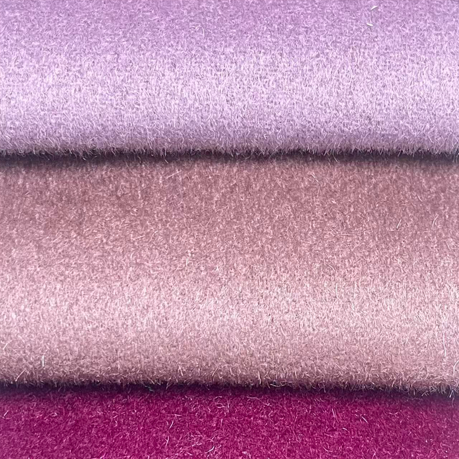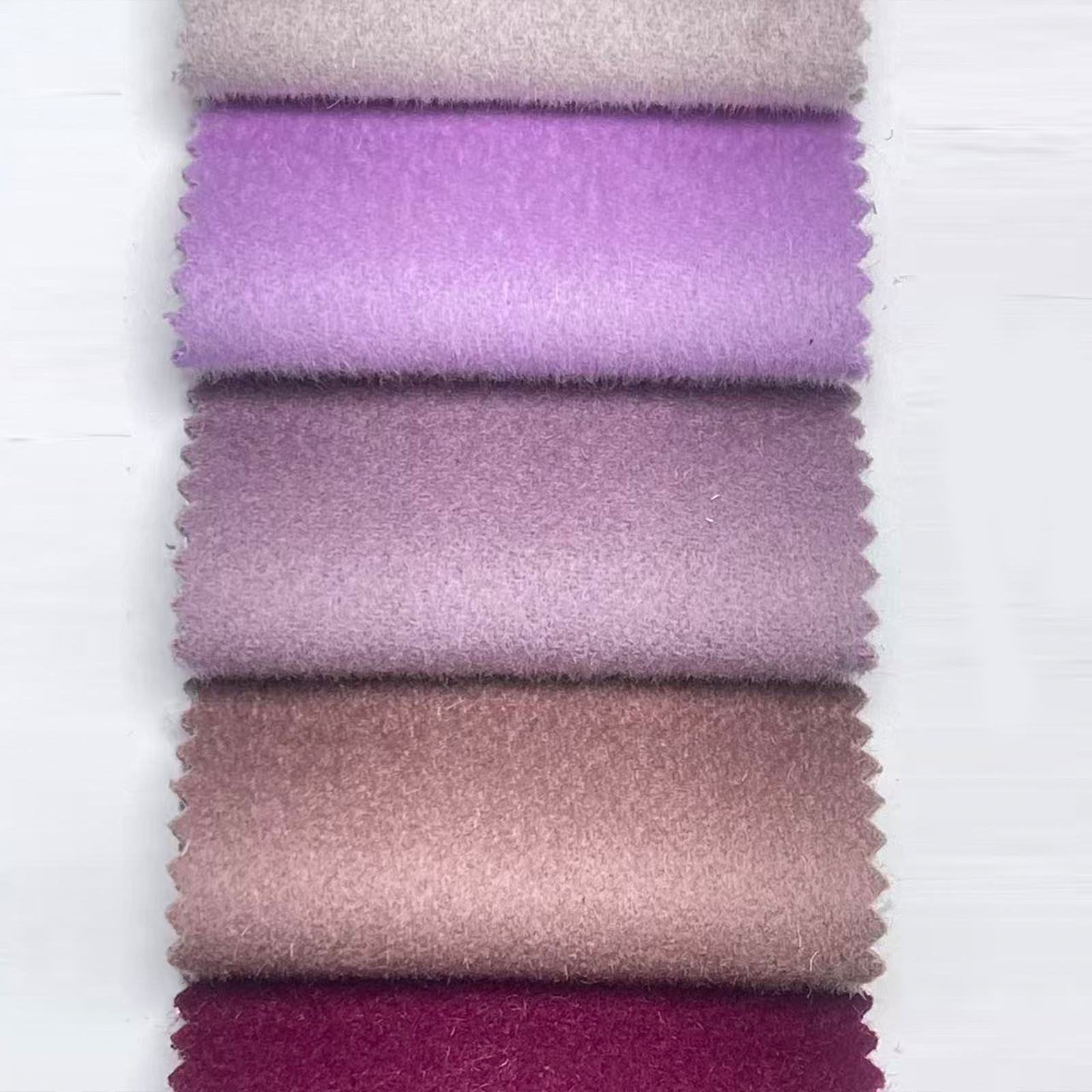 属性:顺毛肌理顺滑柔和,光泽雅致。面料厚实保暖,垂感挺括,亲肤透气。抗皱耐磨,紫色调高级显气质,适合制作秋冬高端双面呢大衣。