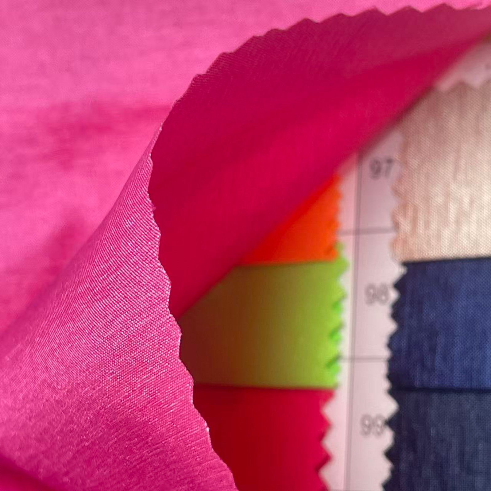 属性:采用高密缎纹织造,自带幻彩变色光泽,随光流转层次丰富。添加弹力纤维,柔韧回弹、贴身不勒,布面顺滑挺括、垂坠抗皱,显色饱满。