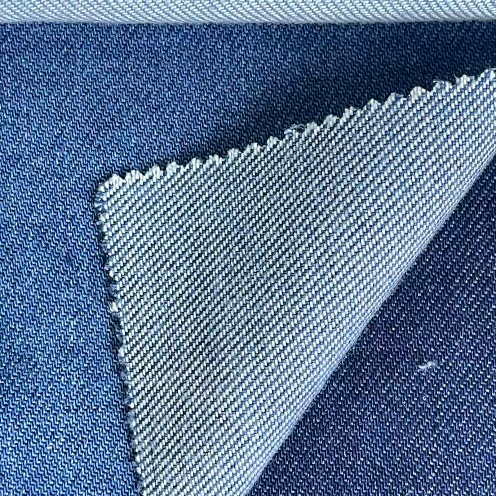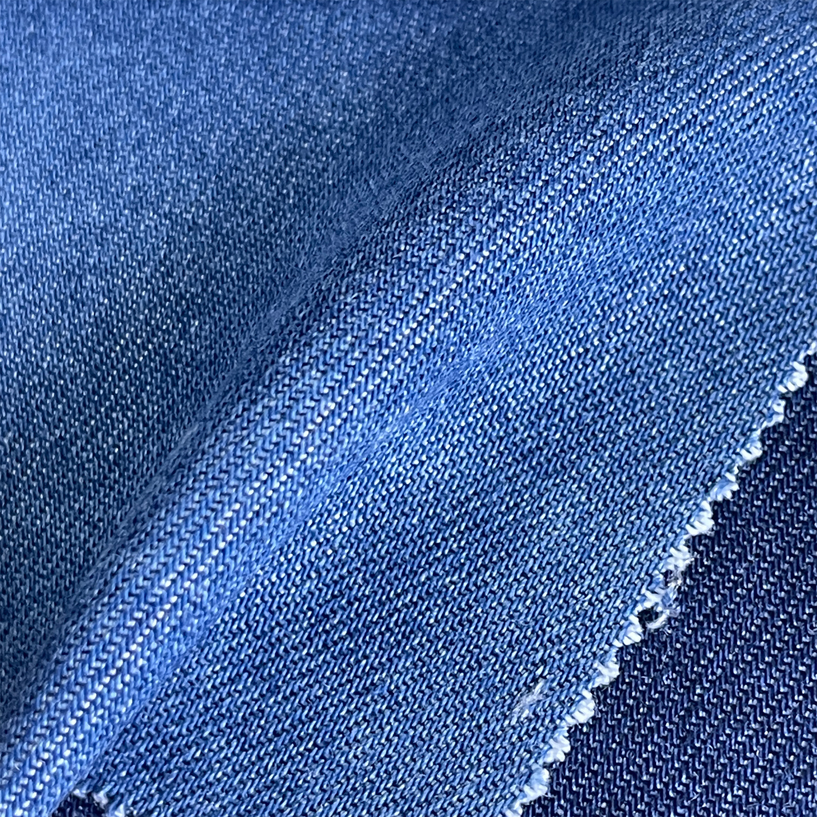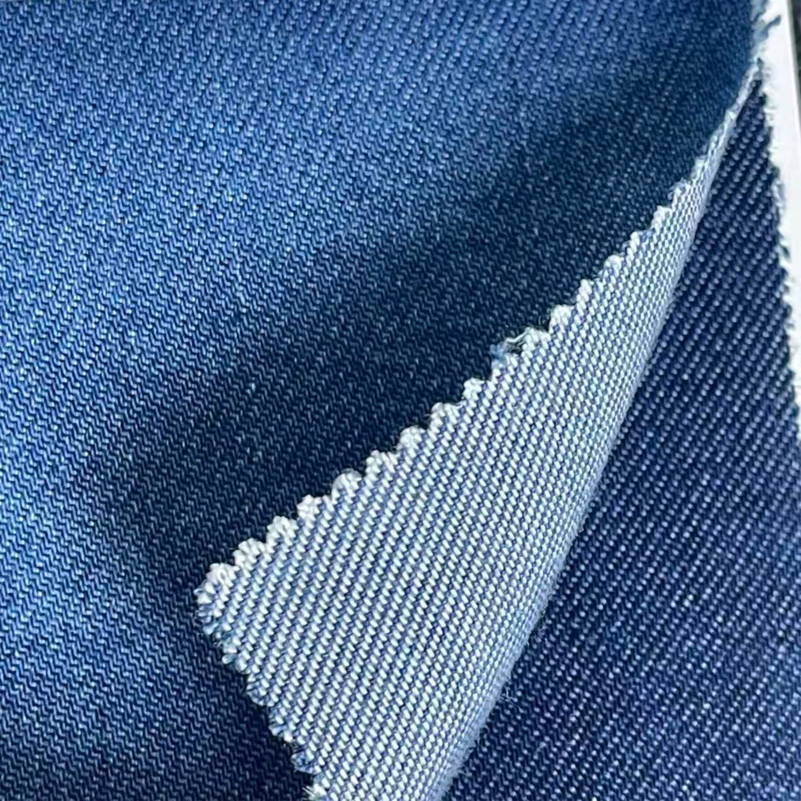 属性:清爽型牛仔面料采用浅靛蓝水洗工艺,布面平整干净,斜纹纹理清晰规整。纯棉材质亲肤透气,夏季穿着不闷汗,预水洗处理后不易缩水变形,适合制作牛仔短裤、吊带裙等夏季单品。
