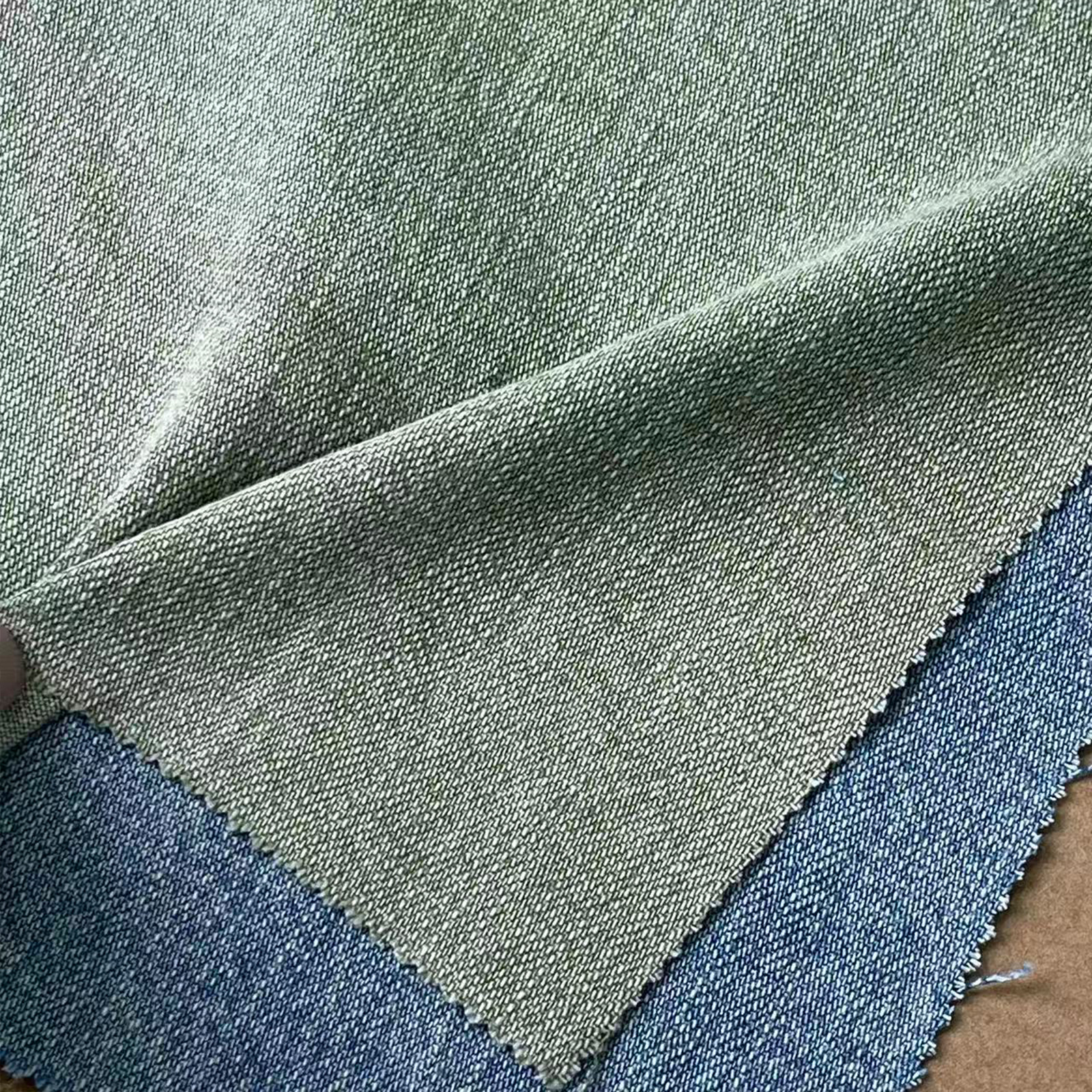 属性:高品质彩色牛仔面料,棉涤混纺结构,挺括有型不易软塌。色彩清新时尚,水洗效果自然,多次洗涤仍保持鲜亮。面料透气吸汗,弹力适中,穿着舒适不紧绷,适合春秋季时尚单品制作