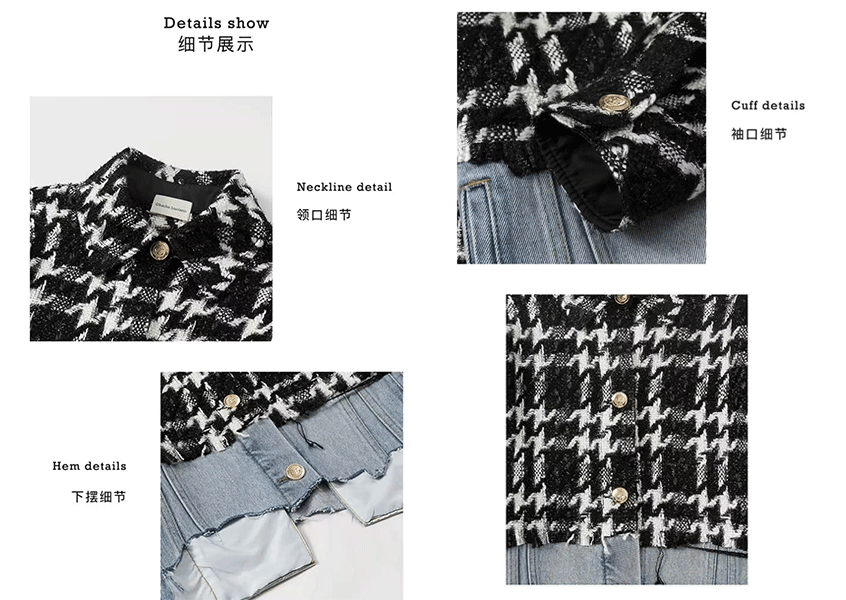 关键词:粗花呢丹宁拼接短夹克