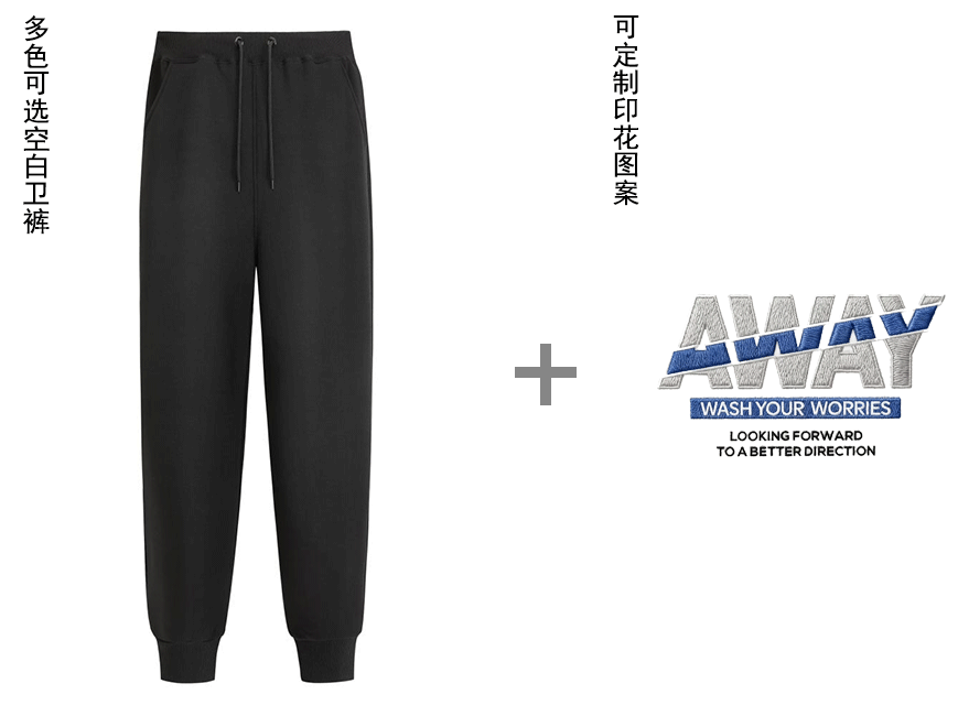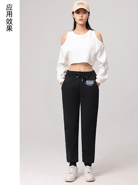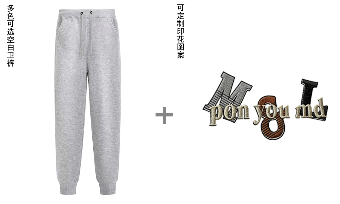 空白卫裤+印绣花图案