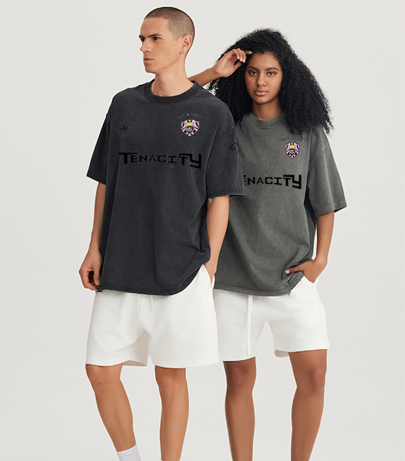 水洗T恤+印绣花图案