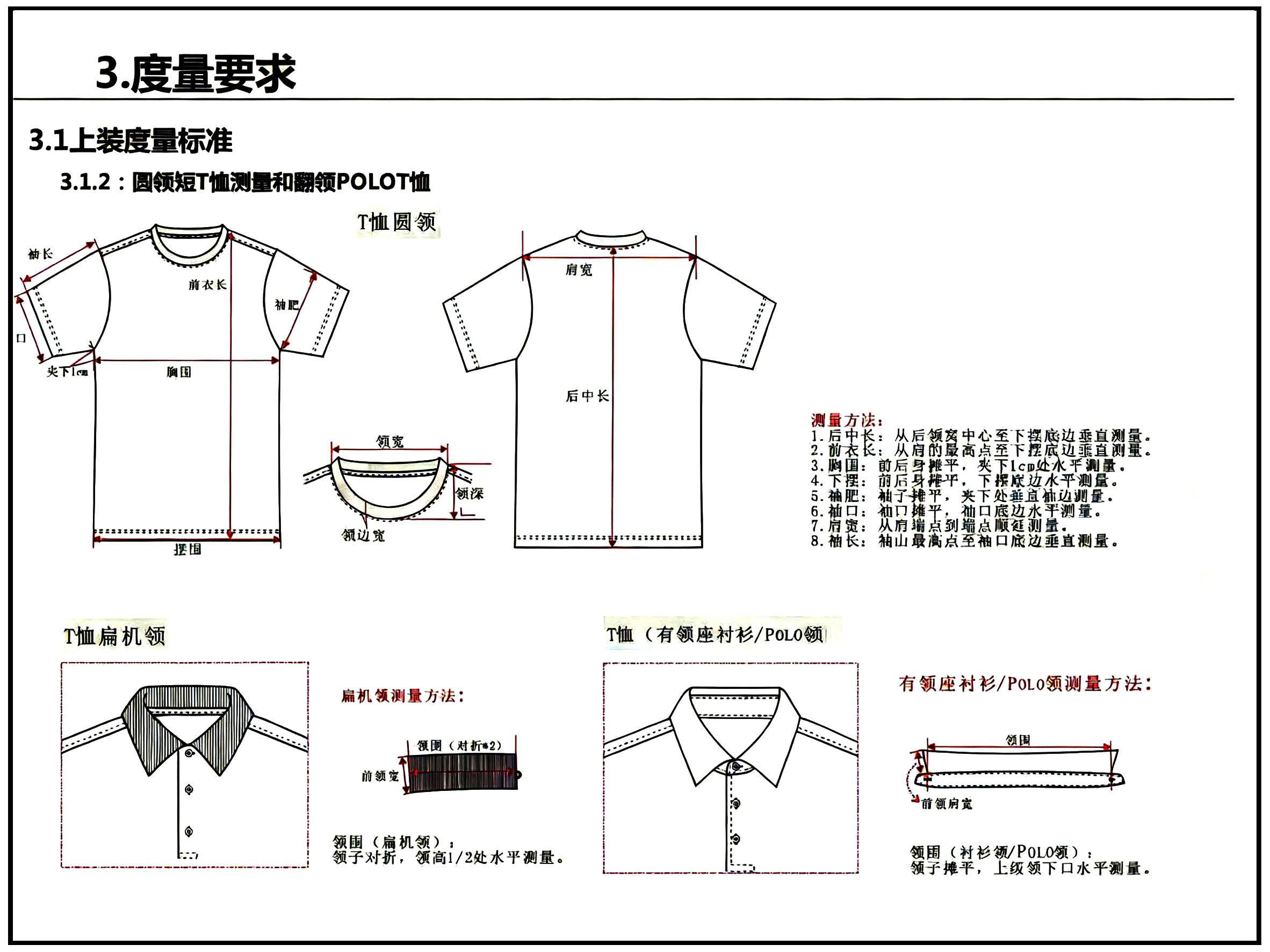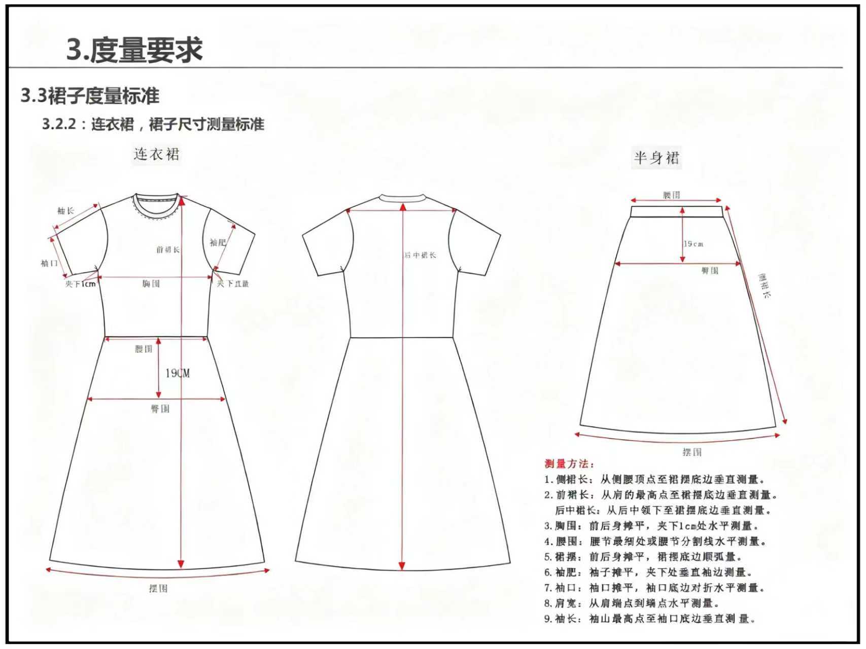 服装尺寸测量对应位置