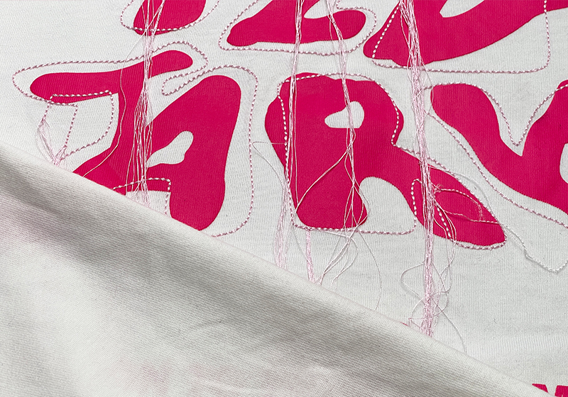 平绣刺绣+丝网印花工艺图案