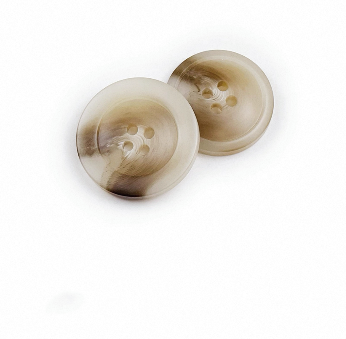 属性:此款树脂纽扣,以浅棕、米白、深棕交织出独特纹理,四孔设计简约实用。似将自然晕染融入纽扣,为衣物添复古质感,无论是西装、大衣,都能借这抹温润色彩,点亮穿搭细节 。