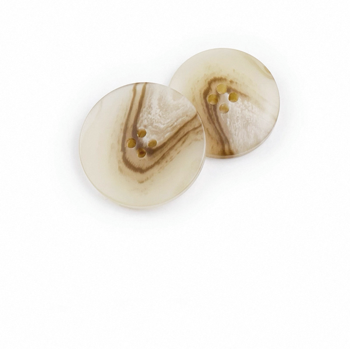 属性:此款树脂纽扣,深棕底色晕染浅棕纹理,如天然石材的独特肌理。四孔设计简约,适配西装、大衣等,为衣物增添低调质感,仿佛藏着时光打磨的故事,一颗纽扣,锁住穿搭的精致与温度。