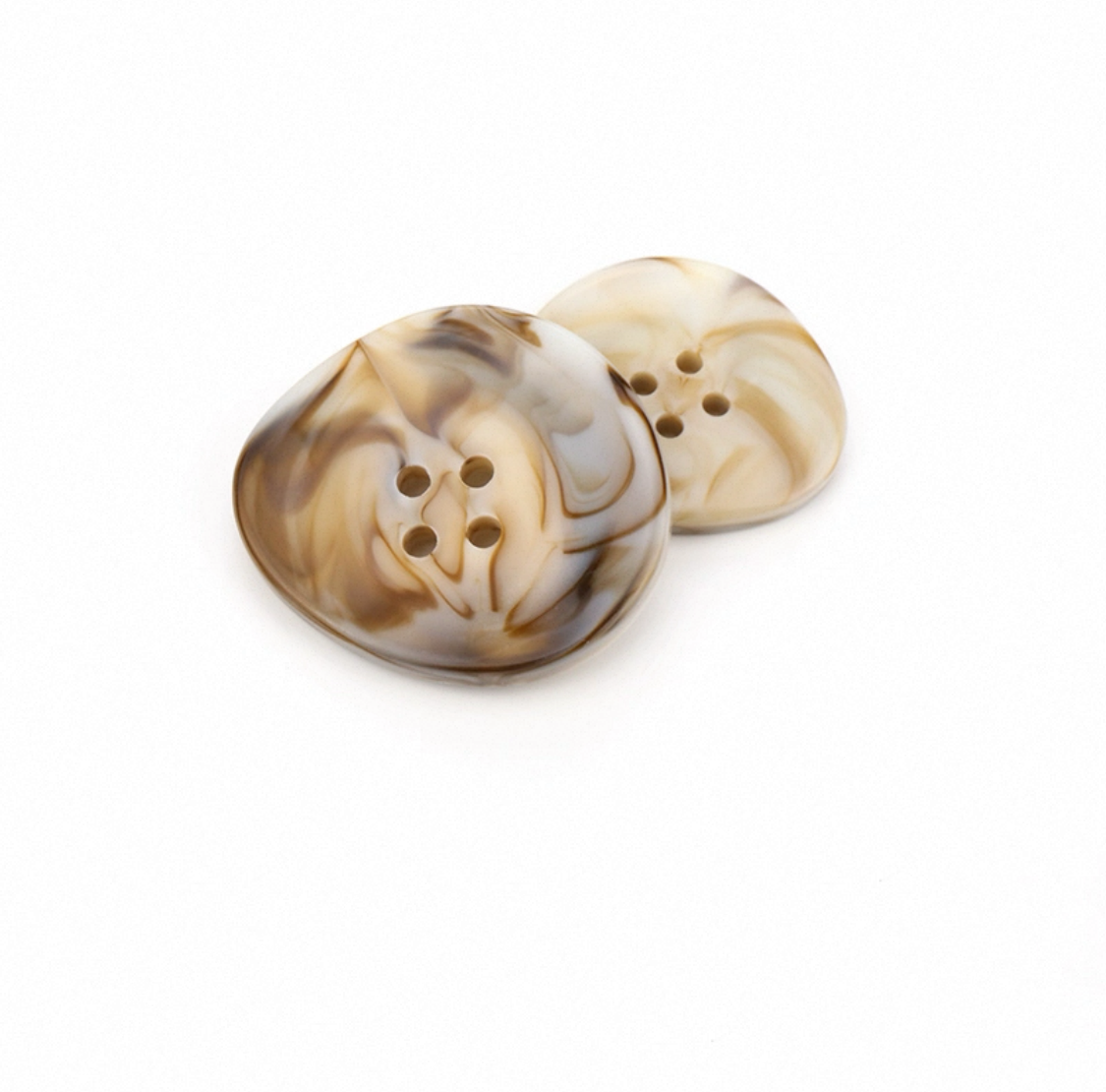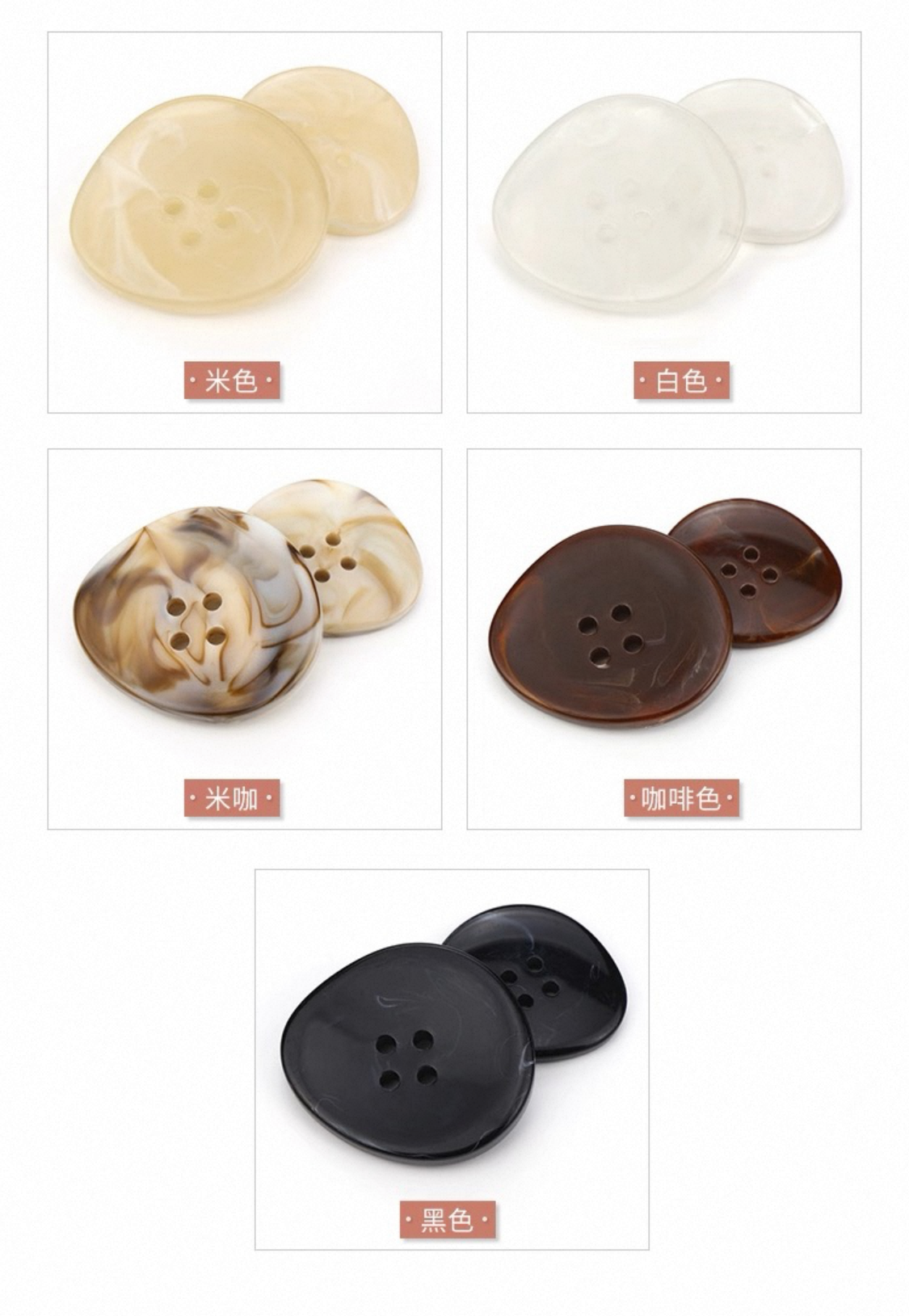 属性:异形树脂扣,浅棕与米白交融,如流动的艺术。独特纹理似天然晕染,四孔设计适配多样针线。为衣物添别致细节,于简约中藏巧思,是手工与穿搭里,点亮质感的小确幸 。