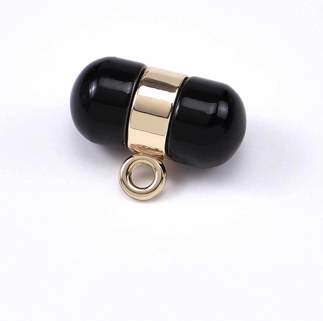属性:金属胶囊造型的国风钮扣,珍珠白与金调碰撞,温润珠光包裹利落金属环,挂圈灵动。打破常规的别致设计,将现代时尚与东方韵味融合,为衣装添一抹精致巧思,扣住独特风格 。