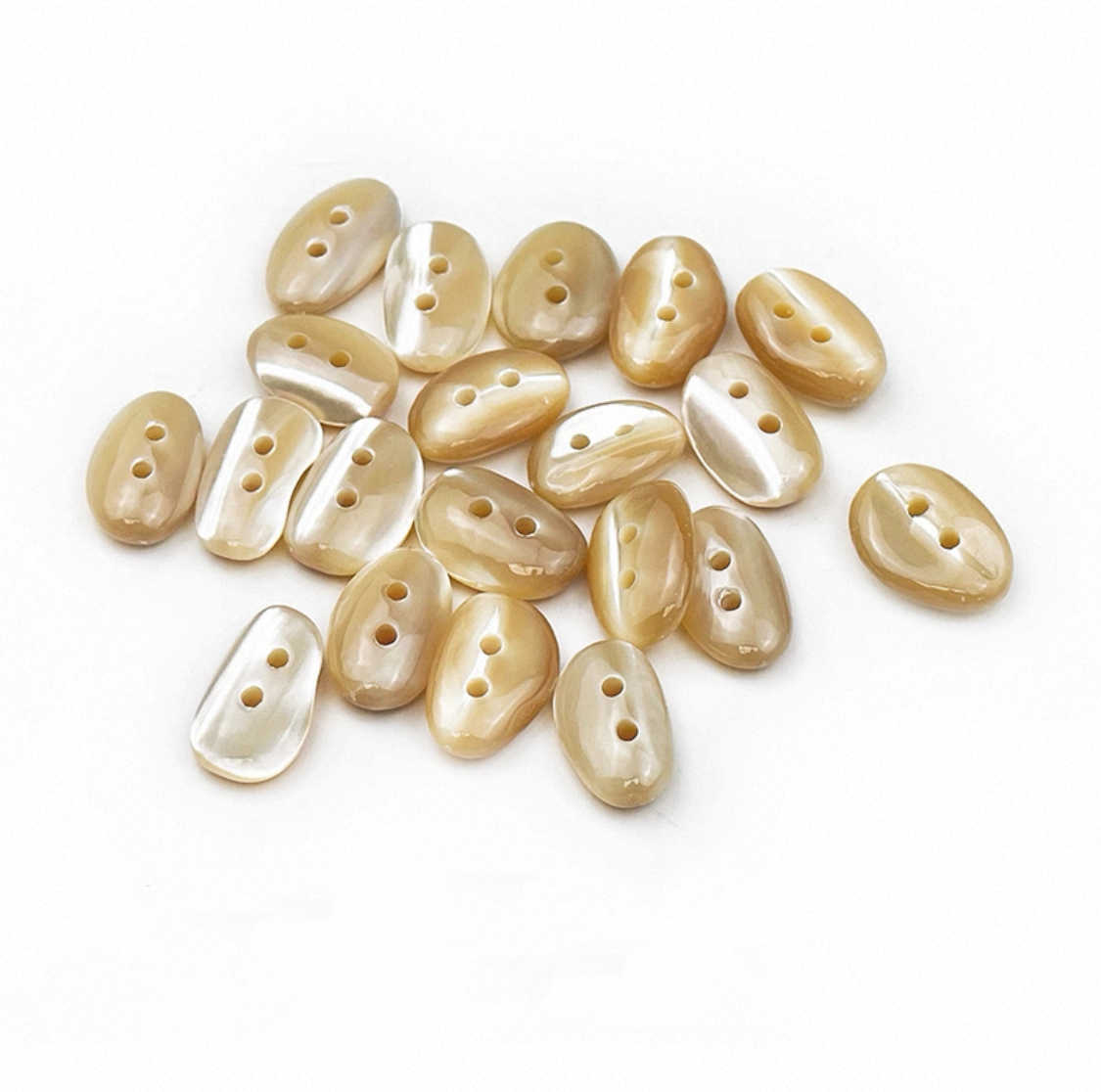 属性:天然塔罗贝壳雕琢,不规则椭圆咖啡豆造型,自带海洋馈赠的细腻光泽 米白、杏色、焗灰三色,适配轻奢设计。两颗孔眼,为衬衫、裙装注入自然高级感,一颗纽扣,就是独特时尚符号。