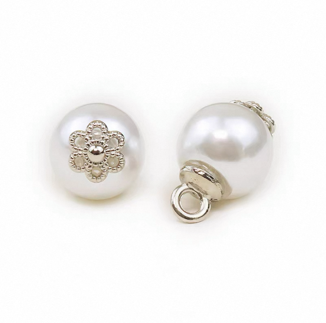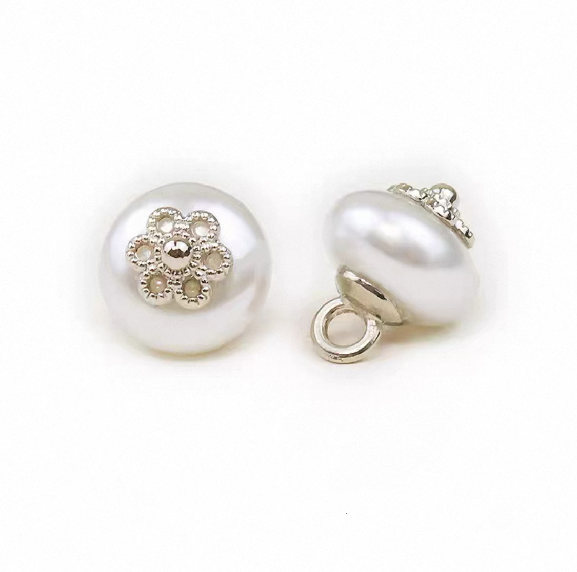 属性:自带贵气的珍珠纽扣来啦, 圆润珍珠搭配金属花托,银金双色可选,扁珠、圆珠两种形态。精致小花造型,为衣物注入优雅细节,不管是复古裙装、精致衬衫,还是手作小物,用上它,高级感直接拉满。